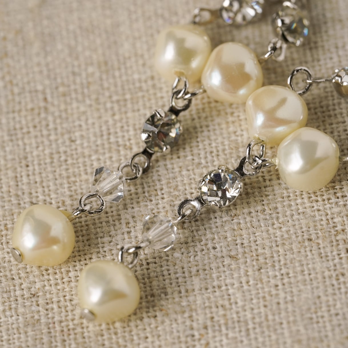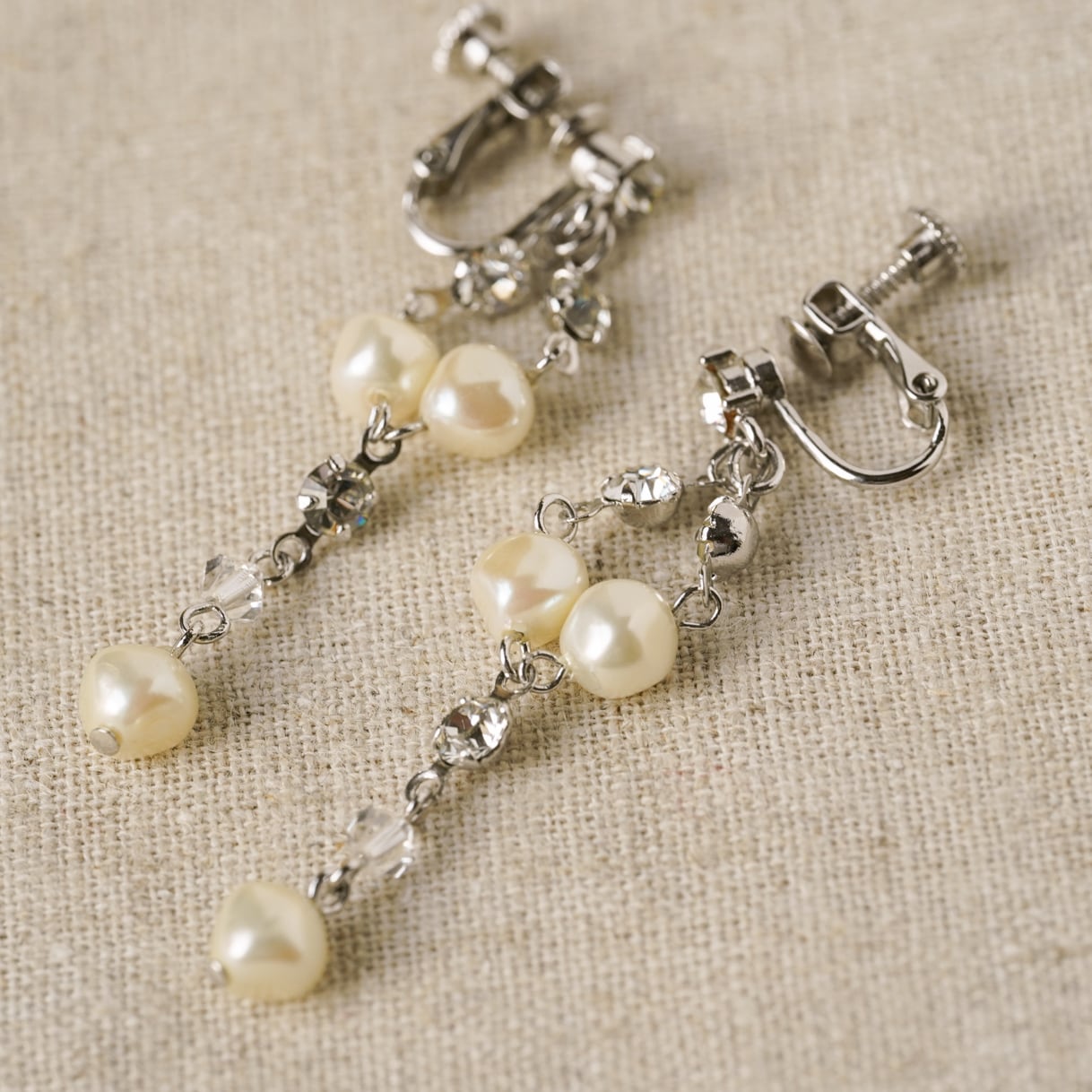 Material: Brass, silver metal plating, rhinestone, costume pearl