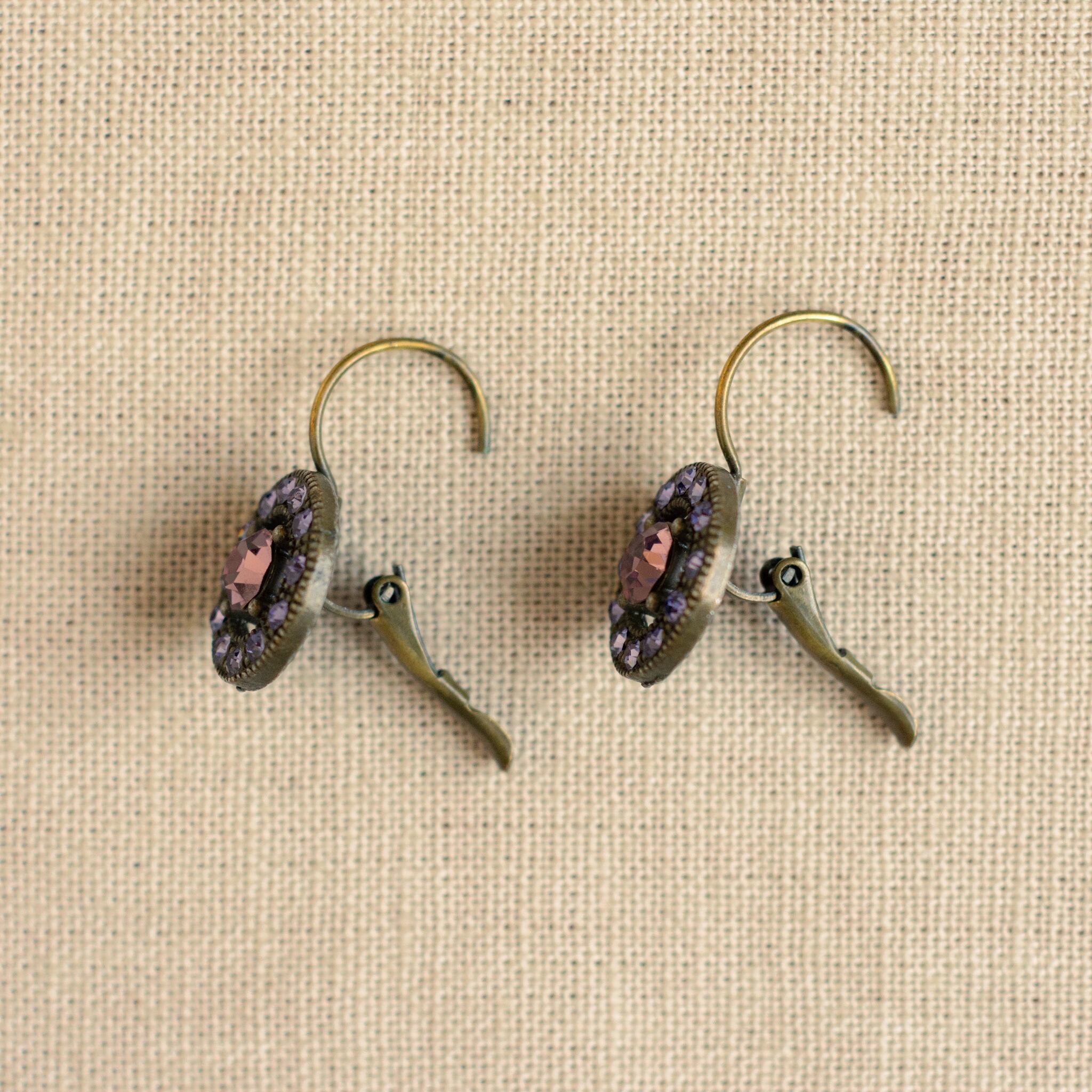 These vintage earrings blend classic refinement with a contemporary edge, featuring a clear pink-toned glass center framed by a delicate pavé of tiny rhinestones. The circular motif adds a modern touch, giving the design an urban sophistication. Their petite size and soft luminosity allow them to rest gracefully on the ear, adding an understated elegance to any look. Designed with a secure French hook closure, they offer both comfort and effortless wearability. A perfect accessory for moments when you want to introduce a subtle sparkle to your ensemble.