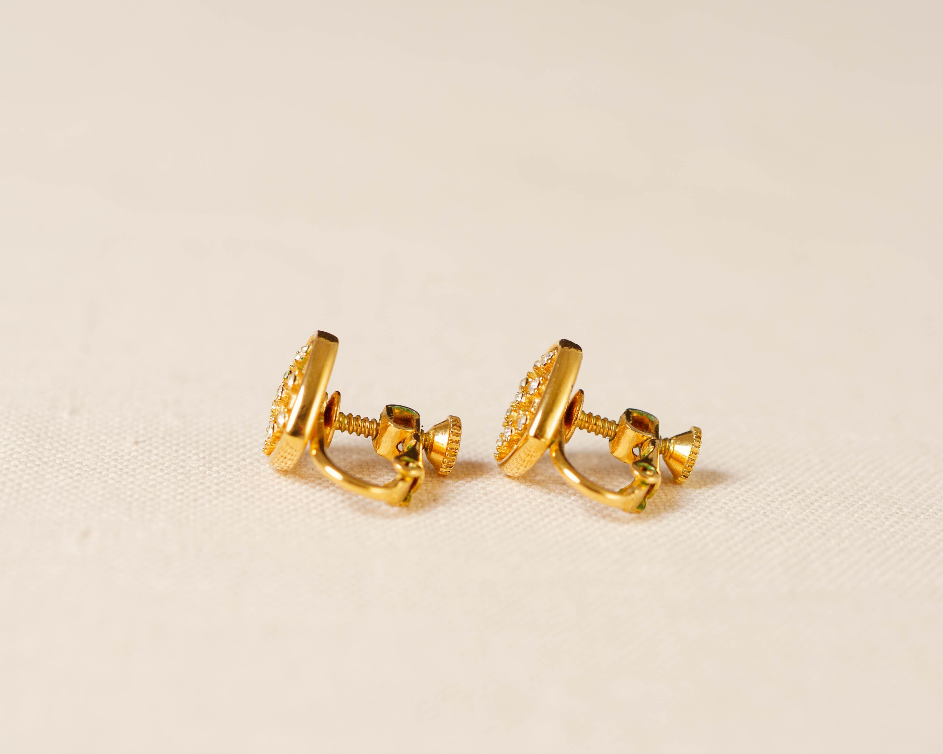 A delightful blend of playfulness and elegance, these earrings brighten your look with subtle sparkle. Try pairing them with a simple white blouse and tapered trousers for a clean yet feminine look, or add them to a black dress for a sweet yet structured accent that stands out beautifully.