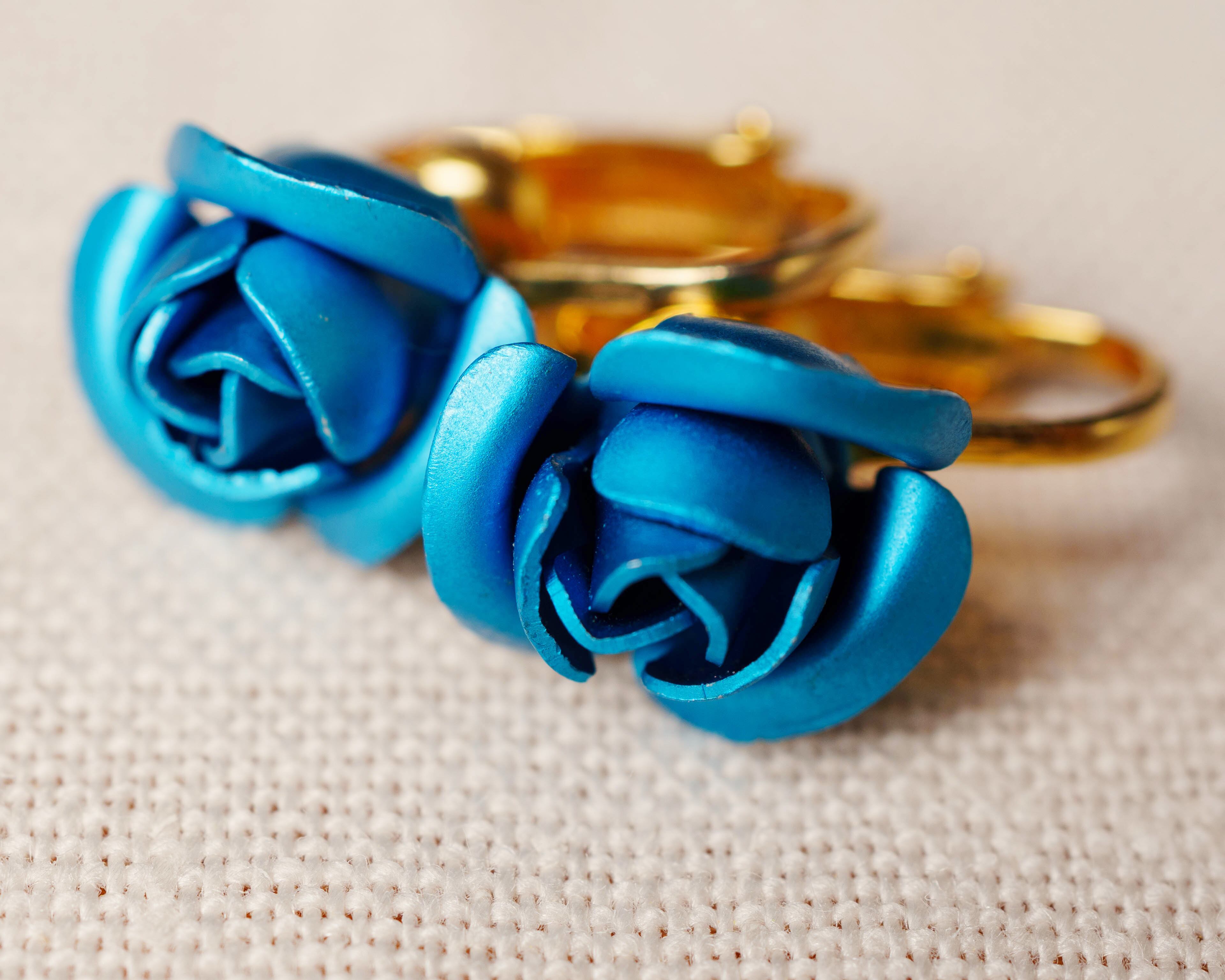 These vintage earrings feature roses sculpted in a vivid, metallic blue—a color rarely found in nature, lending them a dreamlike, storybook quality. Each petal is carefully crafted in gleaming metalwork, capturing both the delicacy of a real bloom and the boldness of imaginative design. Their petite size makes them effortlessly wearable, adding just a hint of intrigue and grace to your look.