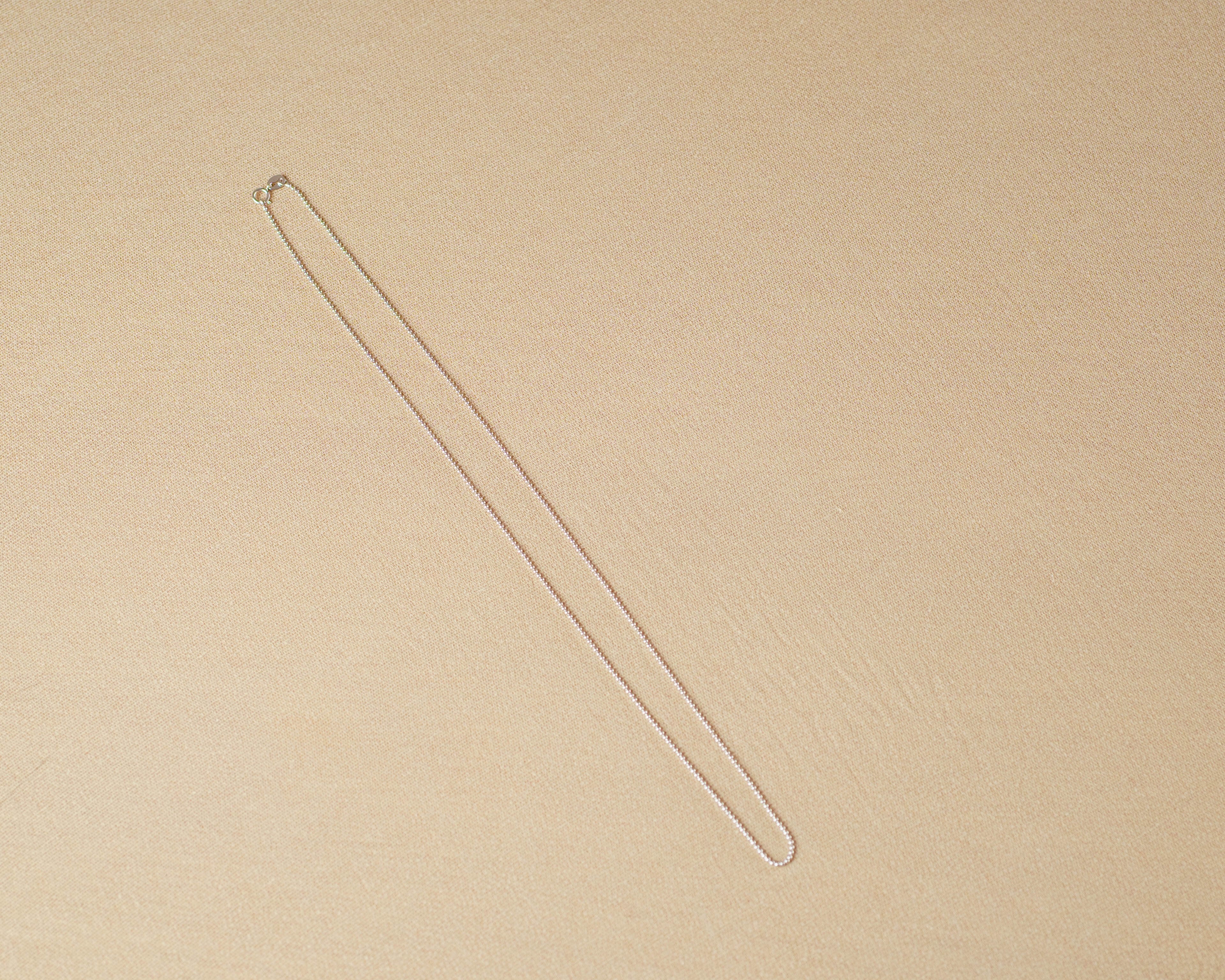 華奢でありながらも、ボールチェーン特有の存在感があり、シンプルなトップスに合わせるだけで洗練された印象に。カジュアルな装いからドレスアップまで幅広く活躍してくれます。