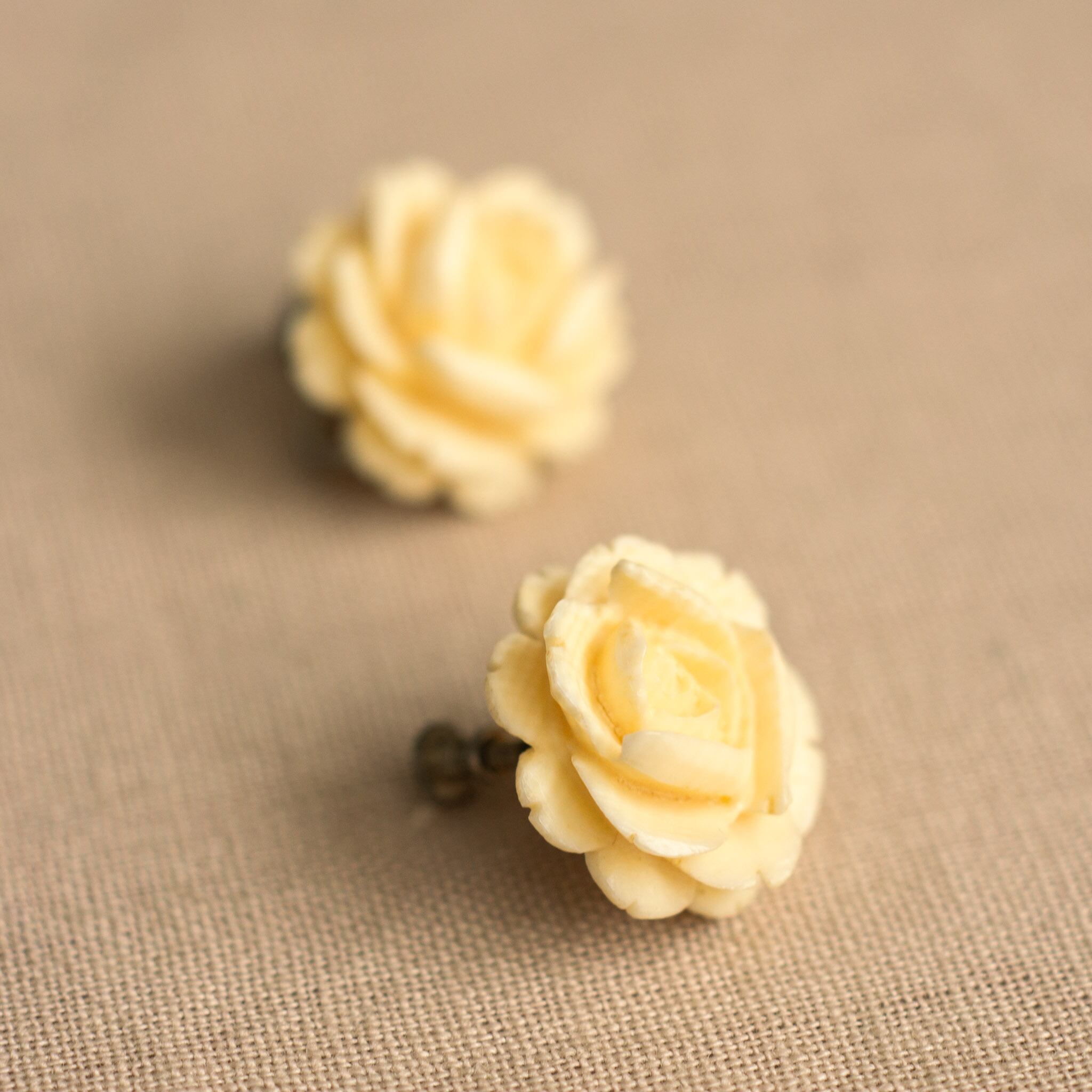 These vintage earrings bloom with quiet charm — each lucite rose delicately shaped by hand to capture the softness and grace of a flower just beginning to open. The pale ivory tone, paired with the gently sculpted petals, gives the piece a lightness that feels both nostalgic and refined.