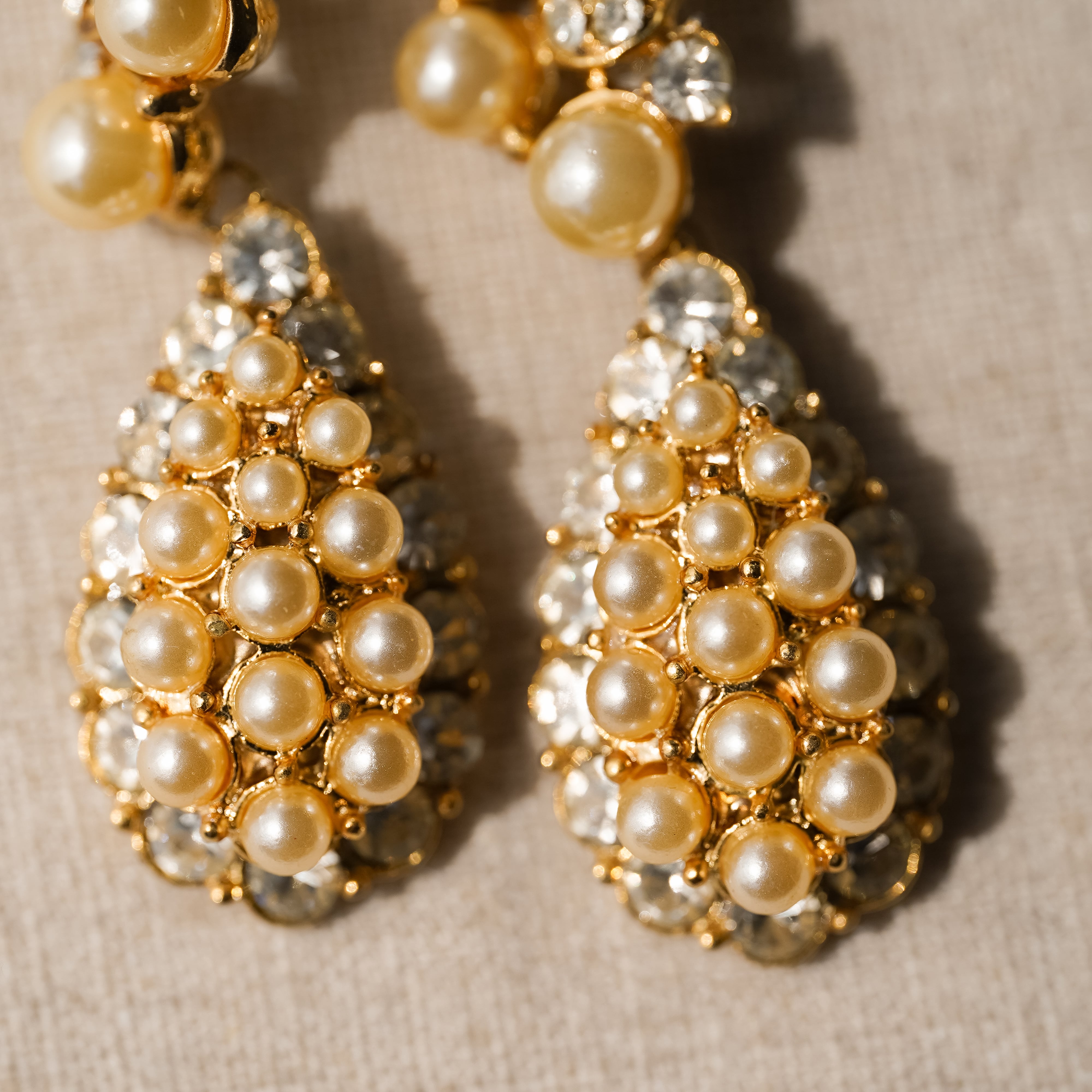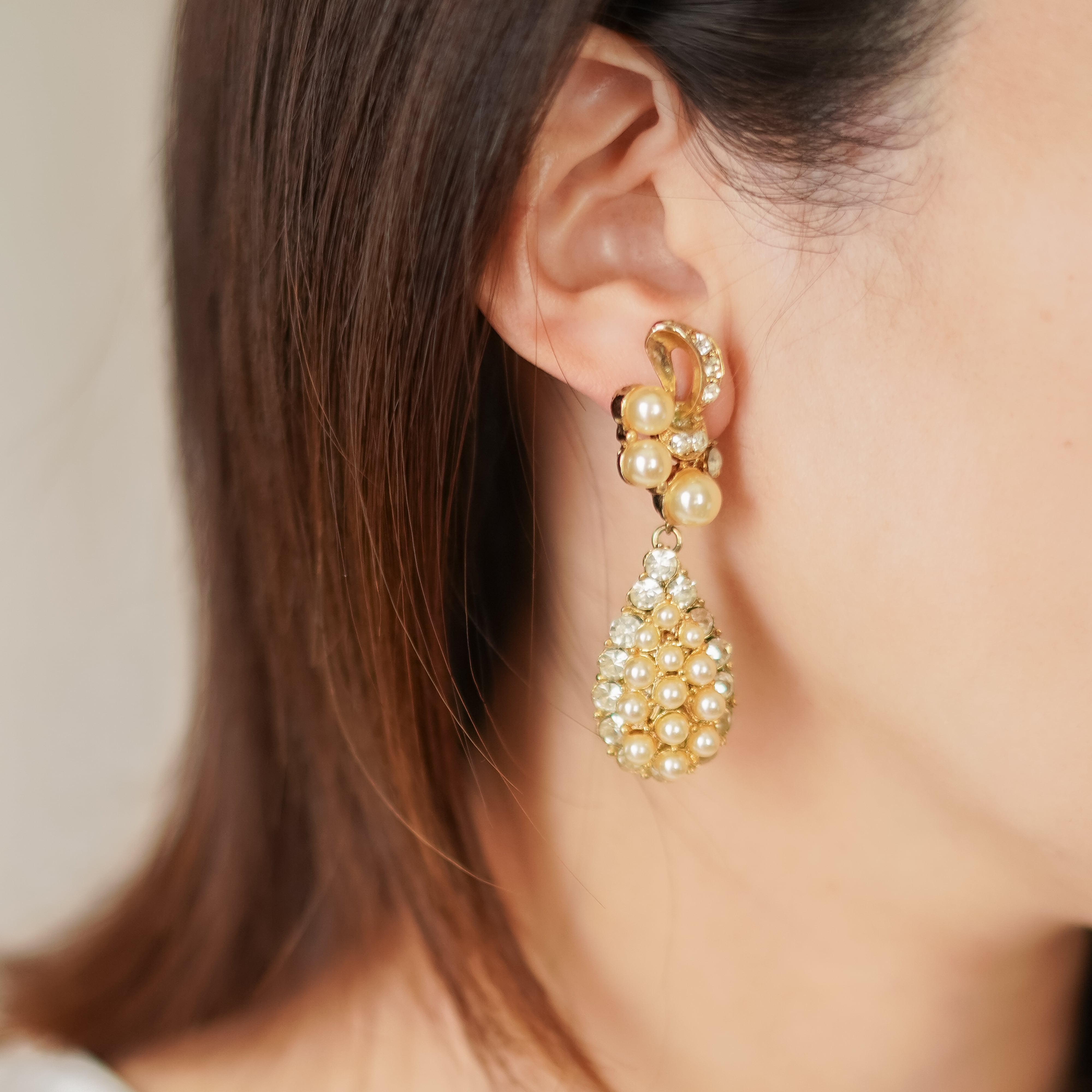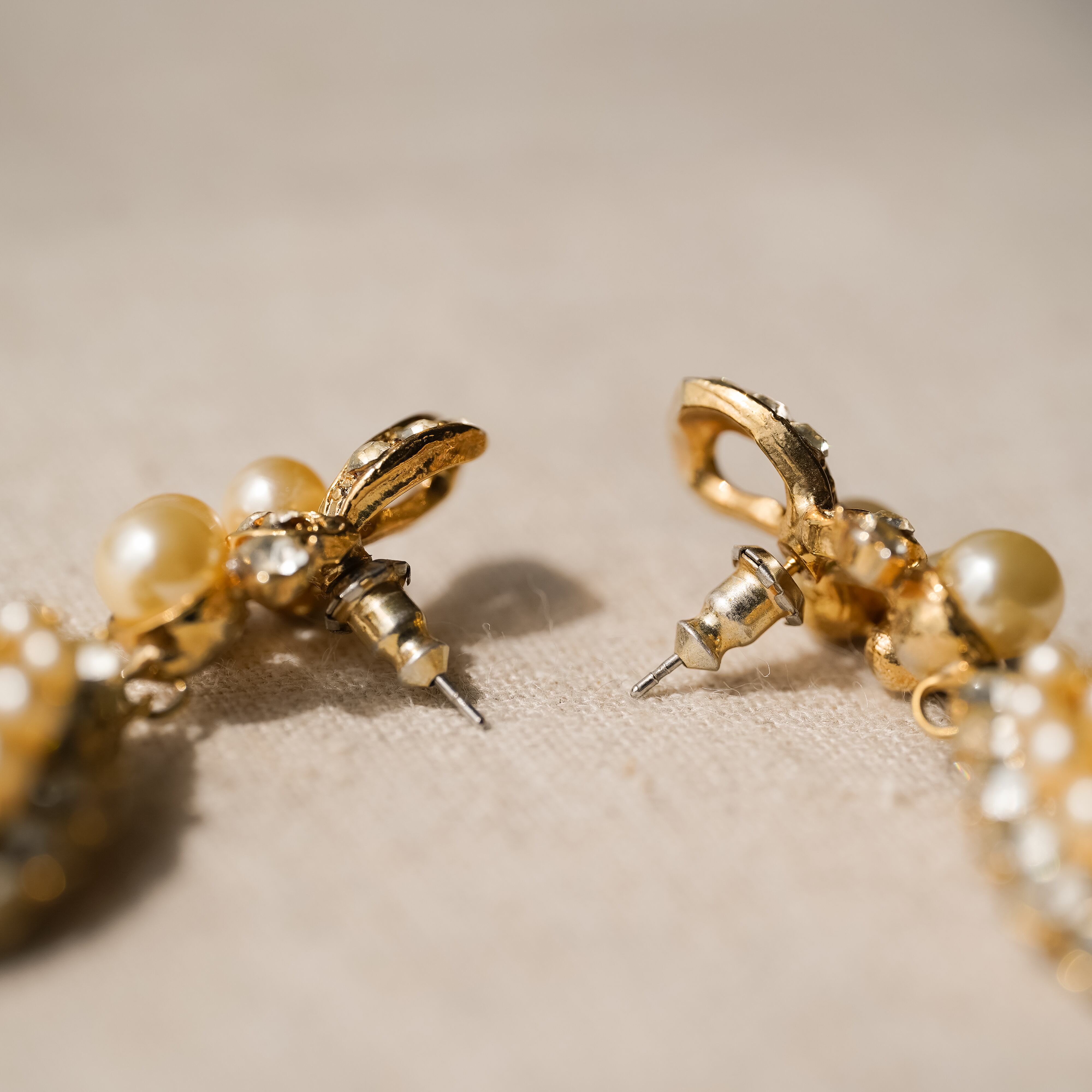ヴィンテージ パール&ラインストーン コスチュームピアス
