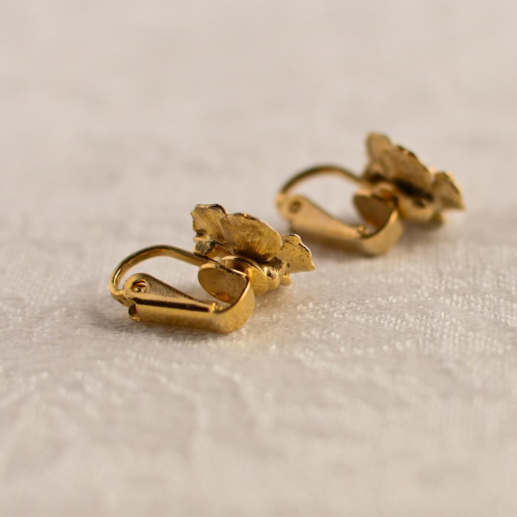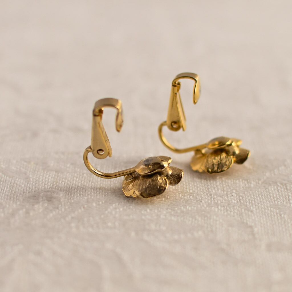そっと咲いた小さな花の一輪に、60〜70年代らしい美意識と手仕事の魅力が静かに息づくヴィンテージ・イヤリング。