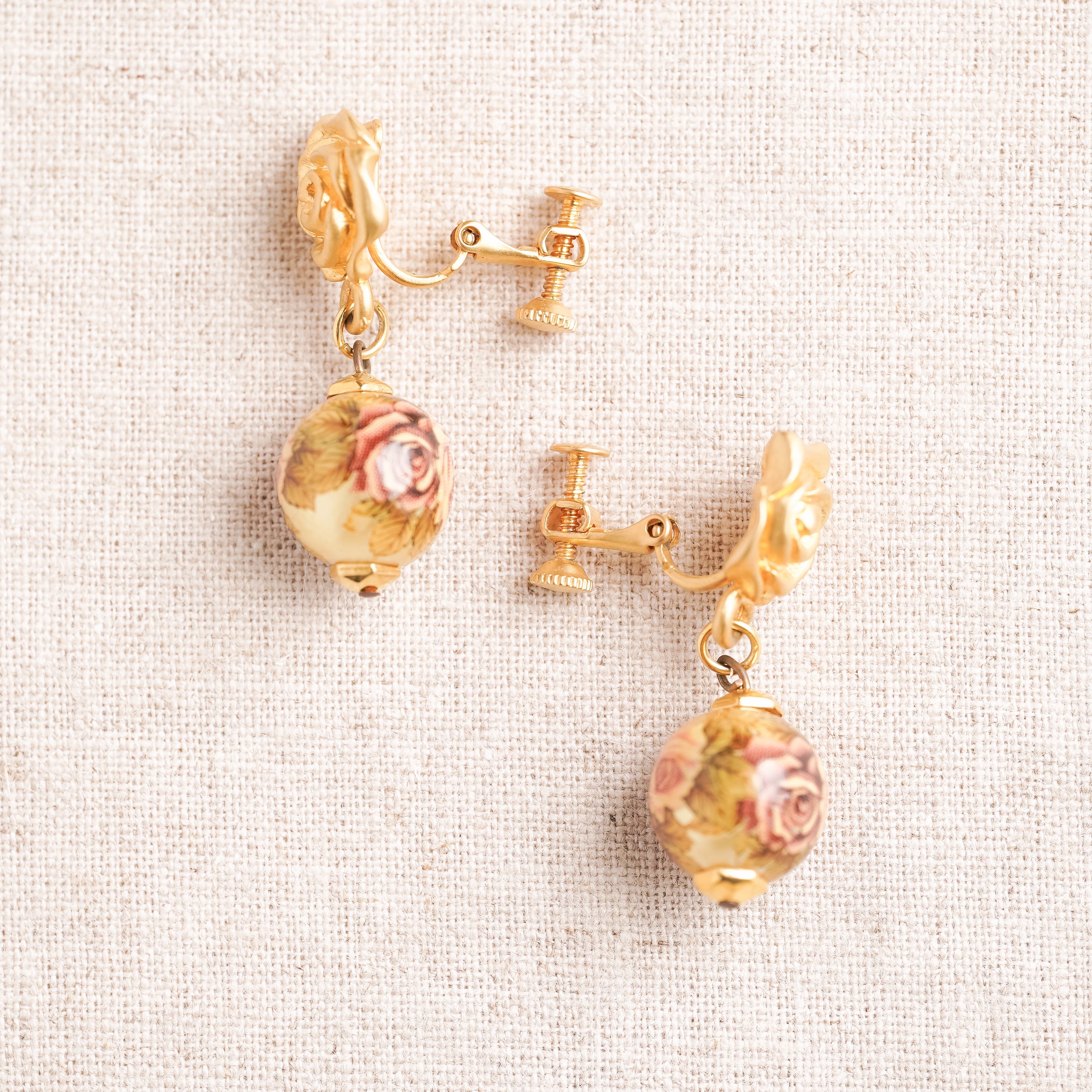ヴィンテージ ローズモチーフ セラミックイヤリング