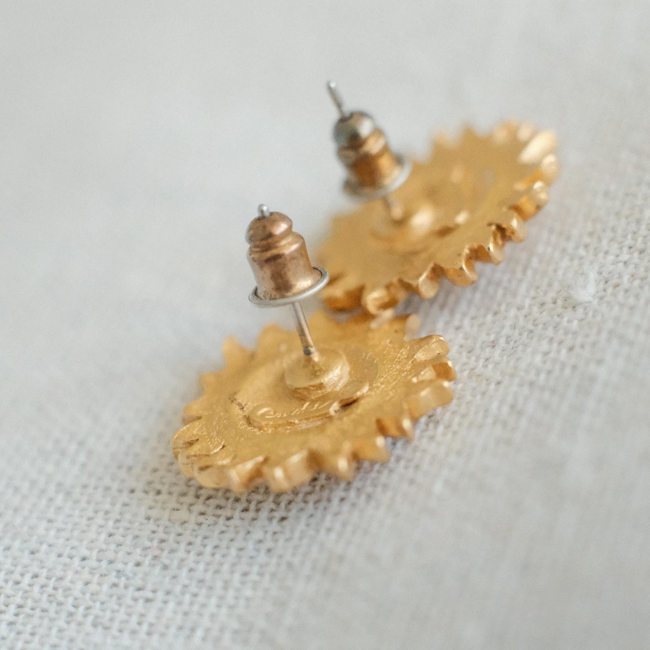 A playful yet sculptural pair of vintage Carolee earrings featuring a stylized sun motif—iconic of 1980s and 1990s statement jewellery.