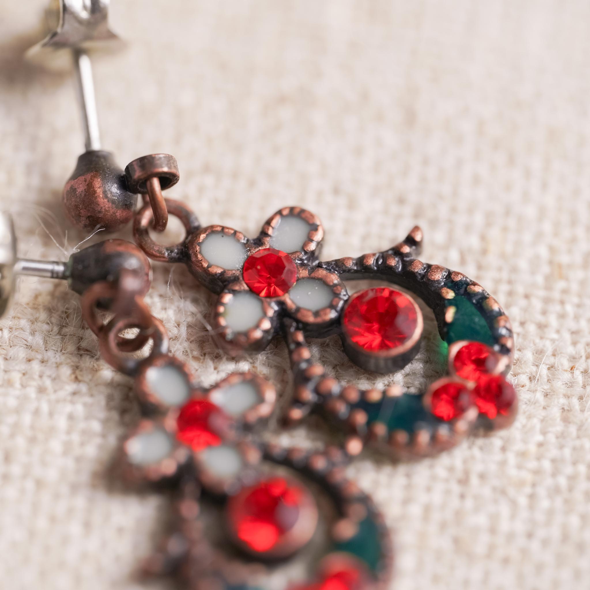Though petite in size, the earrings sway gently with movement, catching the light with a refined sparkle. The floral design is timeless, and the subtle contrast between enamel and crystal adds an old-world charm that feels effortless and fresh.