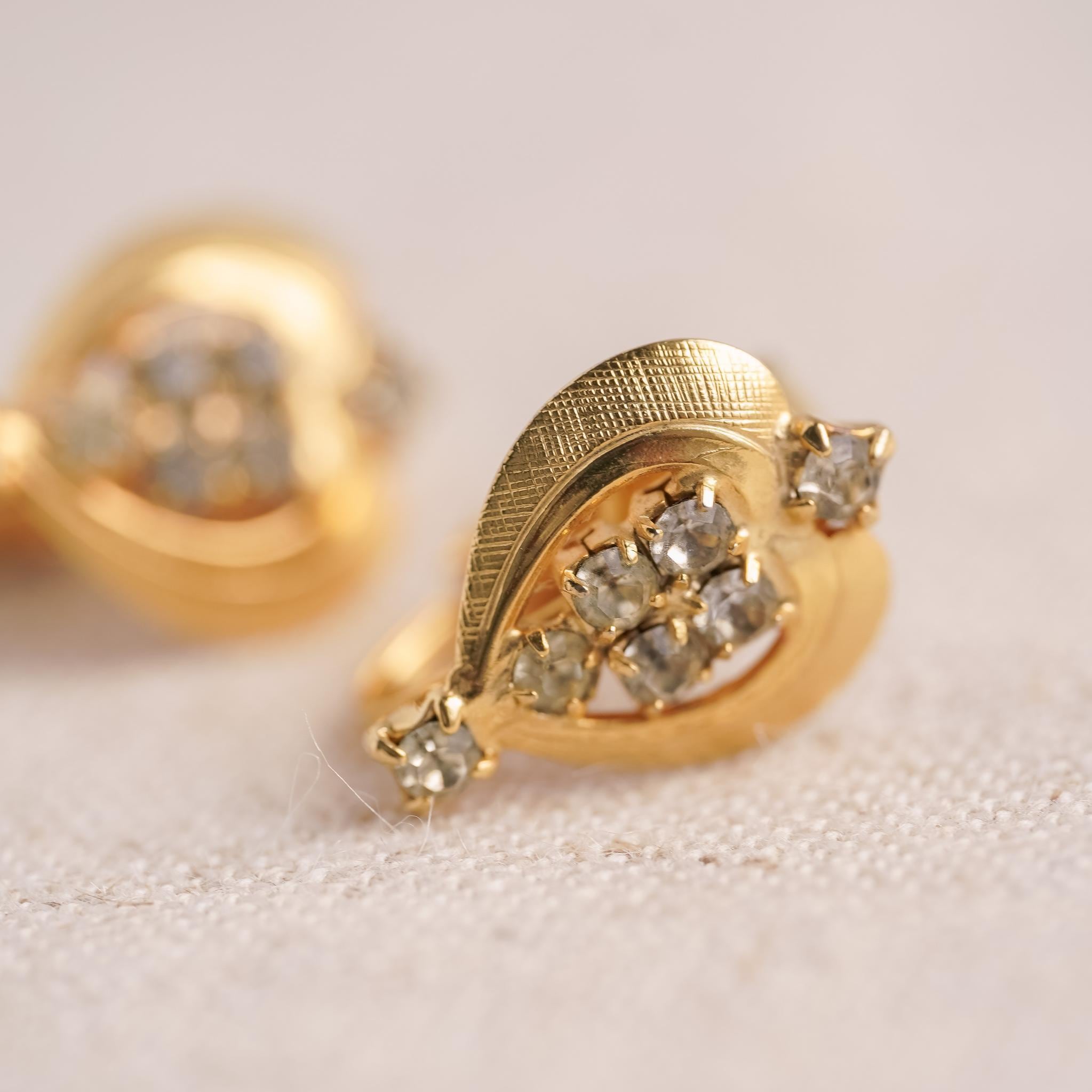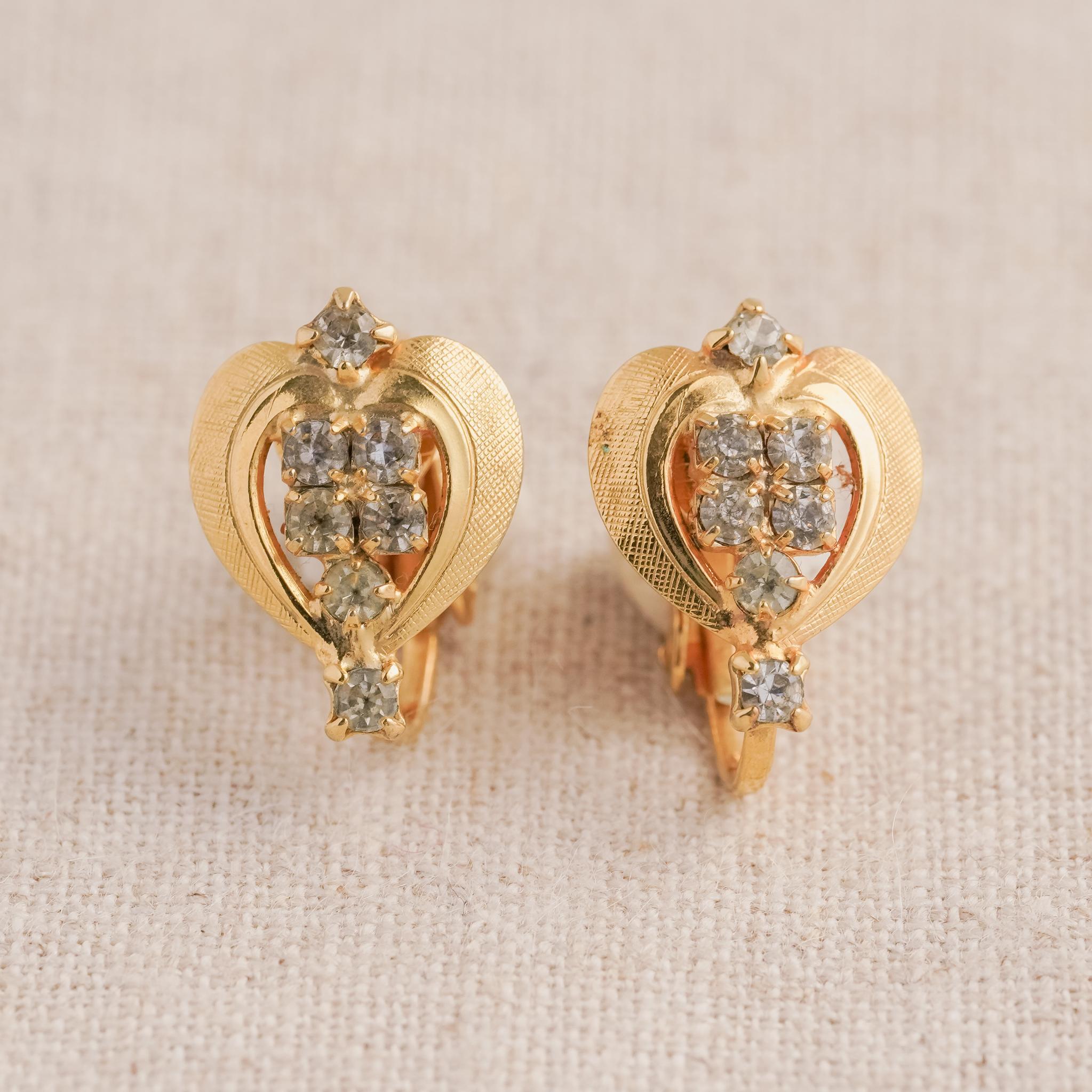 クラシックなハートモチーフに、幾何学的に配されたラインストーンの輝きが都会的なエッセンスを添える、ヴィンテージイヤリング。
