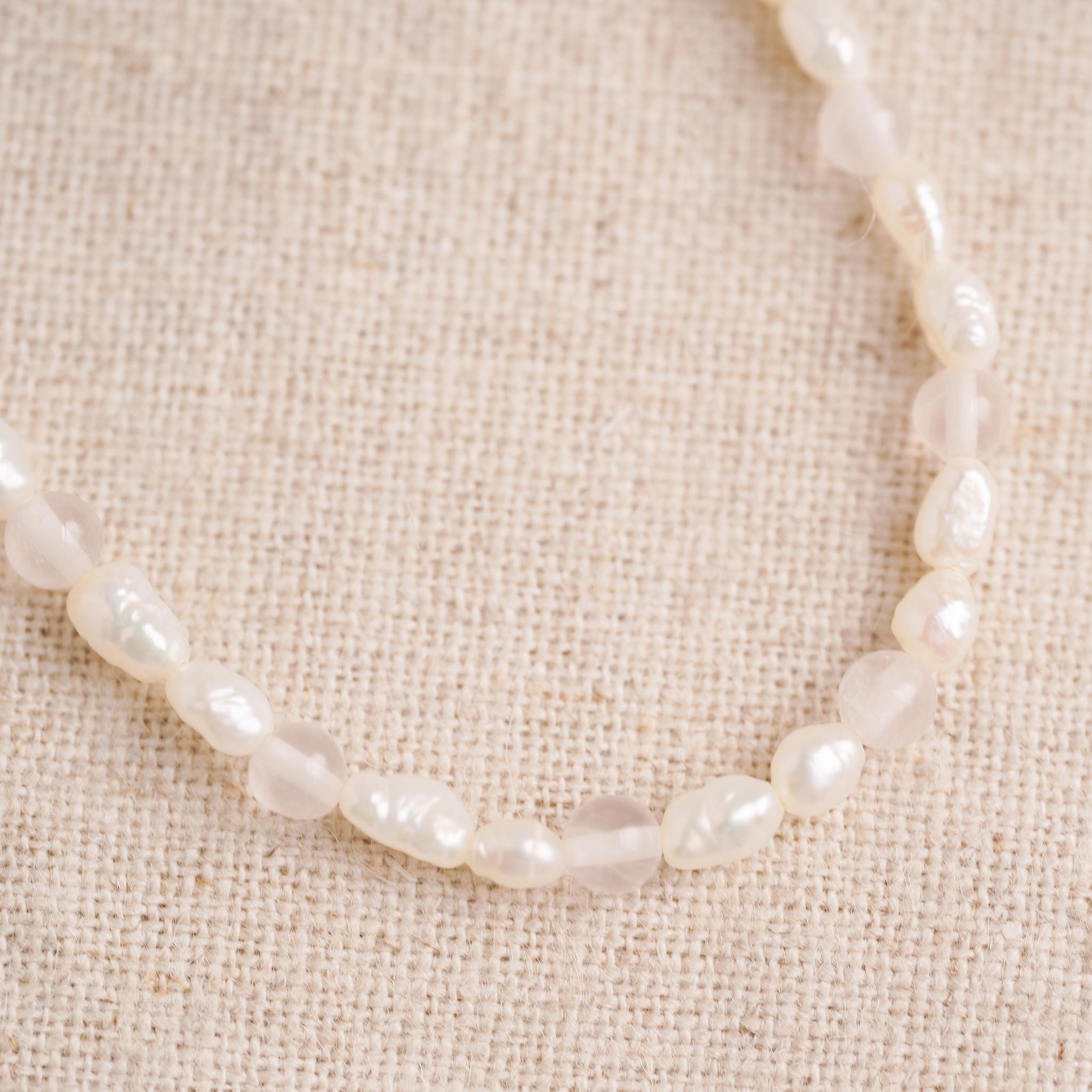 Each pearl is uniquely shaped, with subtle curves and contours that lend the necklace a soft, organic rhythm. Rather than uniformity, it is this gentle irregularity that creates depth, movement, and understated charm.