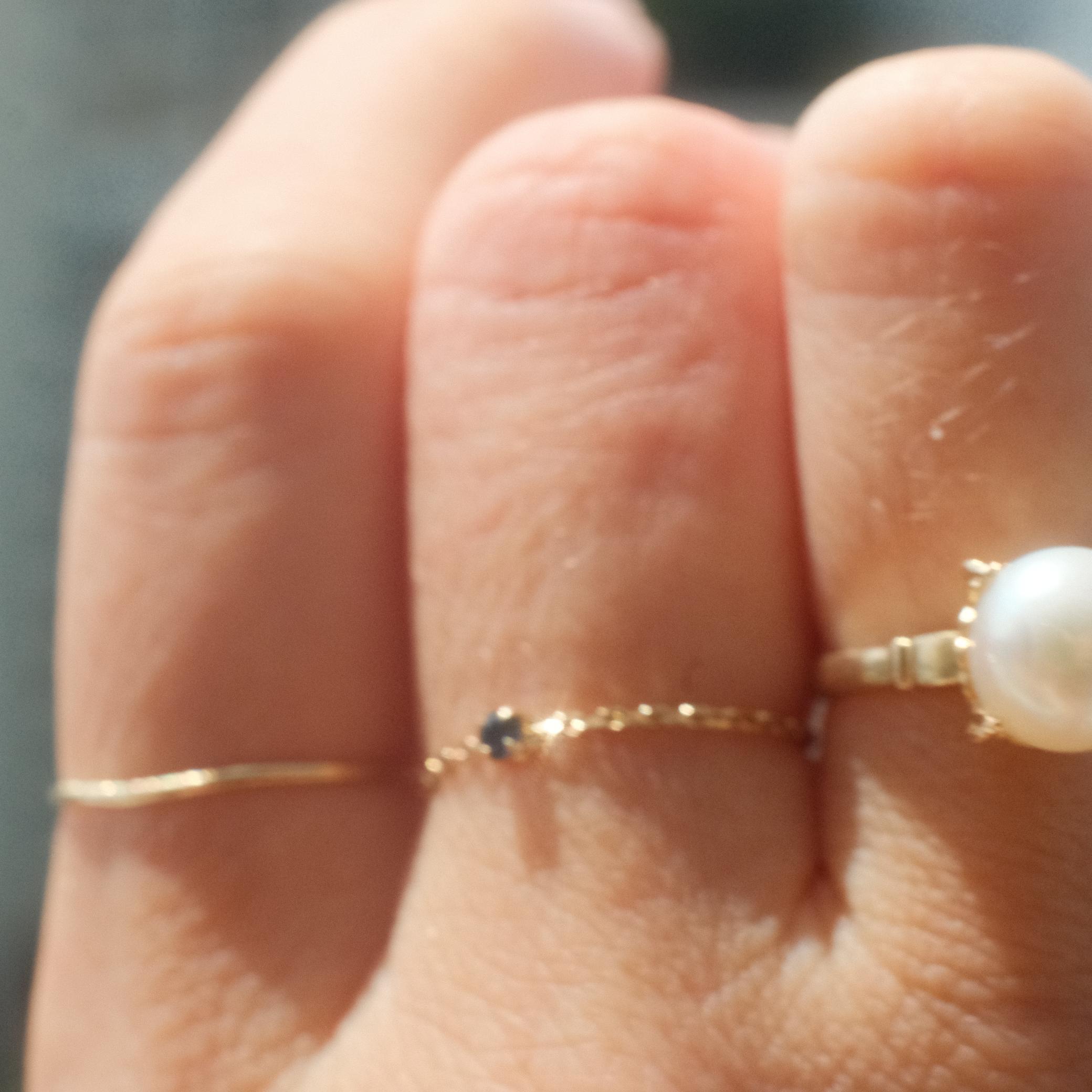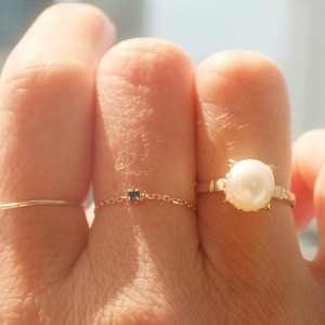 指にすべらせた瞬間、華奢なチェーンが肌に溶け込み、ブルーの光が小さな鼓動のように瞬きます。ひと粒のサファイアは、特別な日だけでなく、日常にも小さな魔法をかけてくれる存在。シンプルに纏えば透明感を添え、重ね付けすればモードな奥行きを演出。ふとした仕草に心がときめき、まるで秘密を身にまとうような高揚感を与えてくれるリングです。