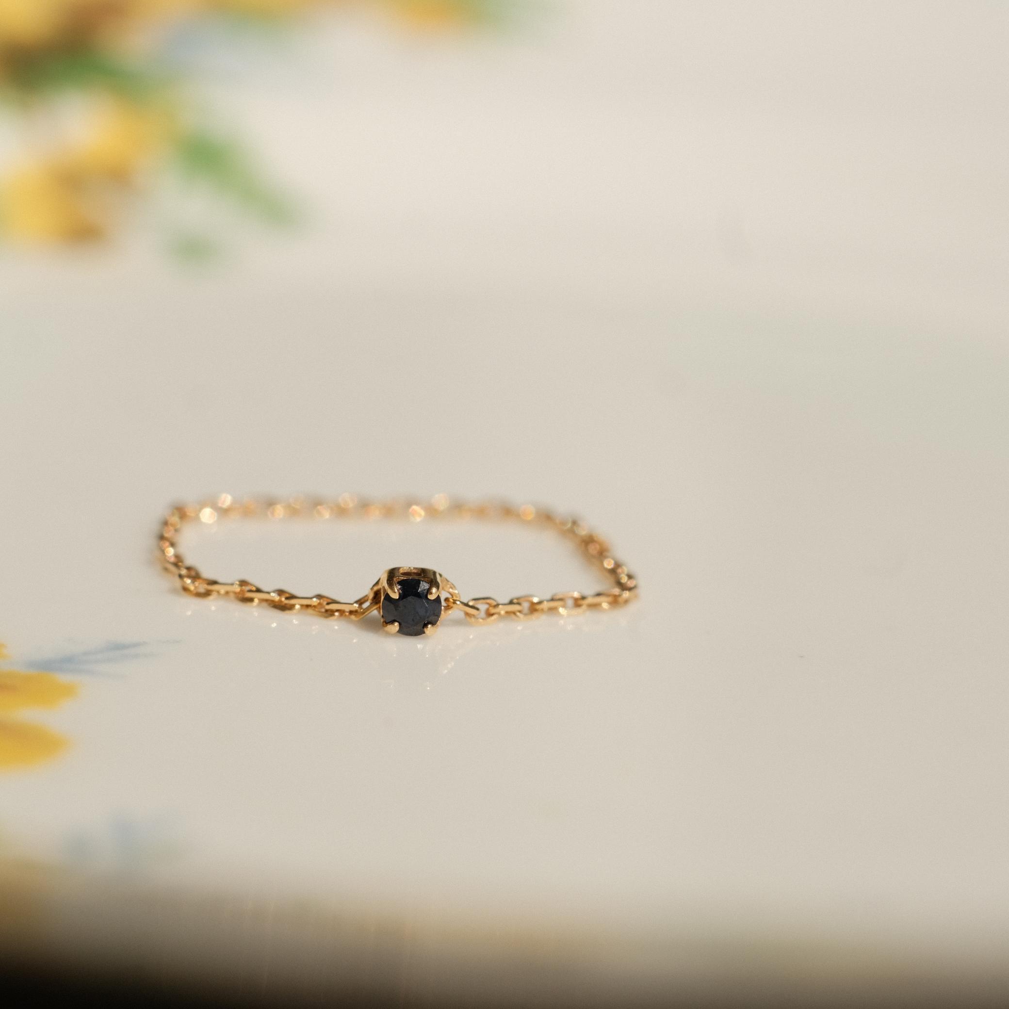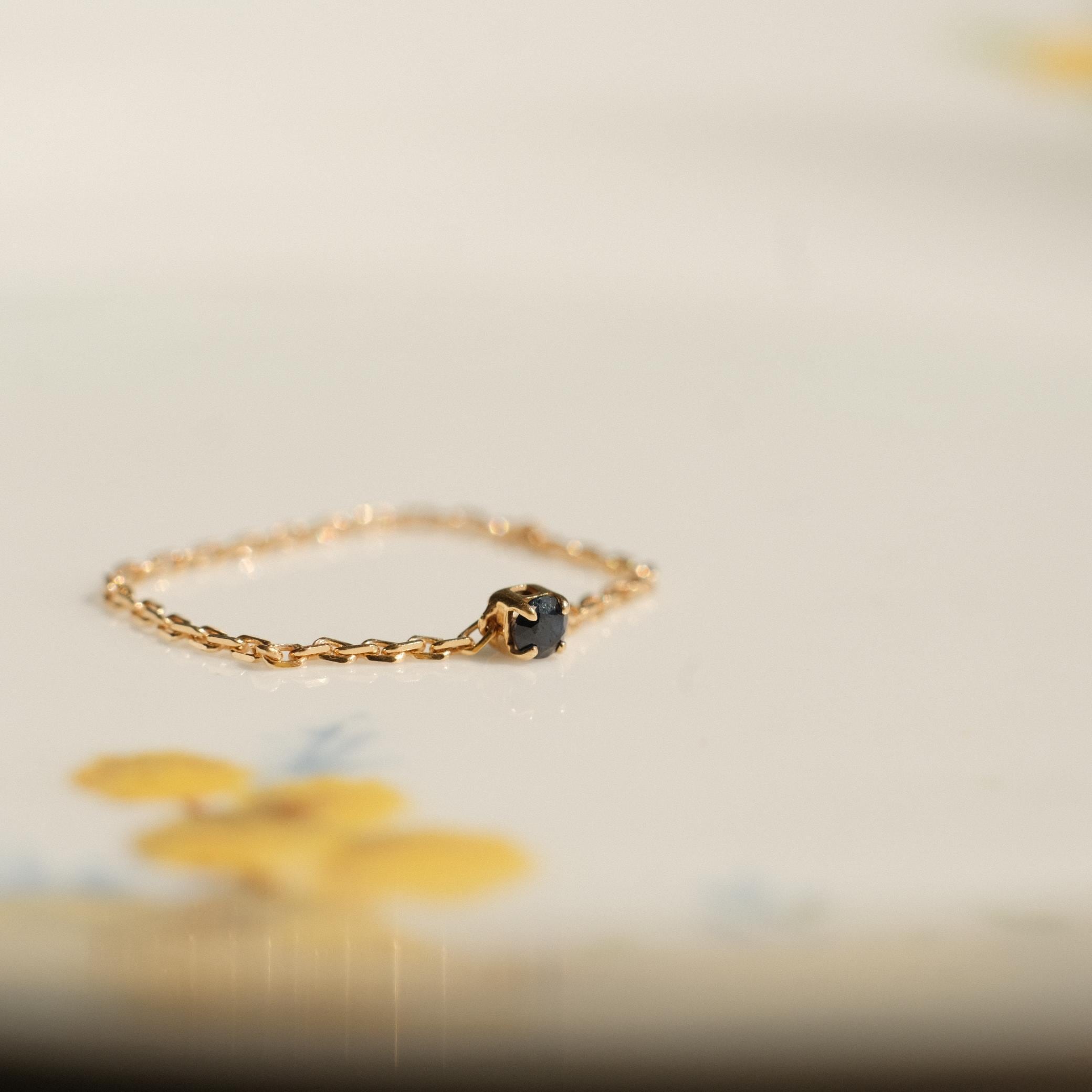 深いブルーのサファイアをひと粒あしらった、18Kチェーンリング"Celestine"。