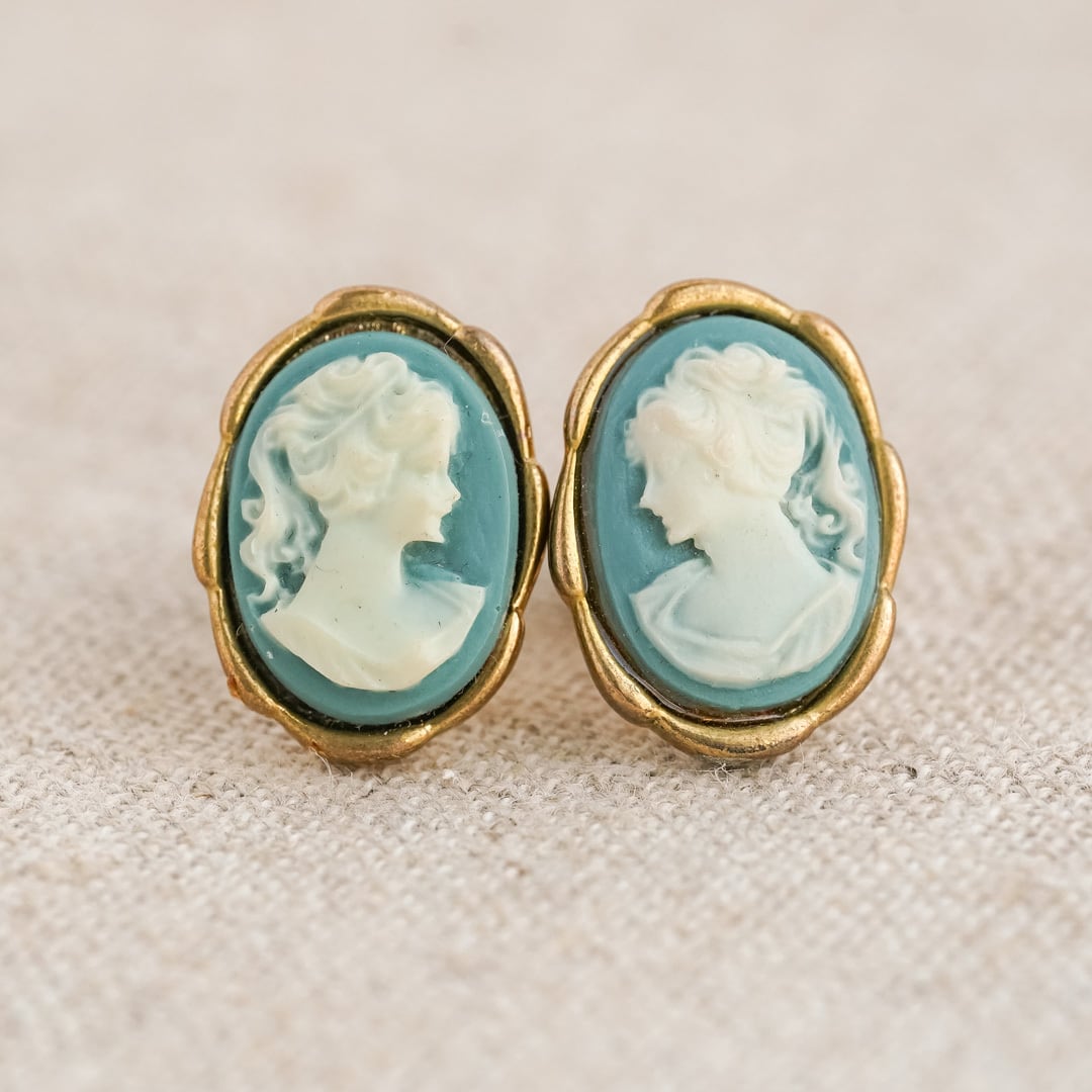 These vintage cameo earrings capture the delicate harmony between craftsmanship and artistry.