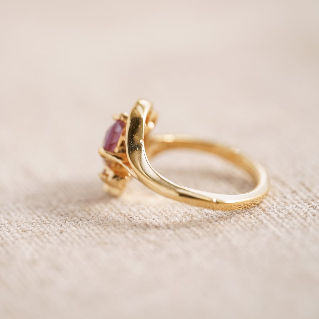淡いライラック色のストーンが、ほんのりと指先を照らすヴィンテージリング。