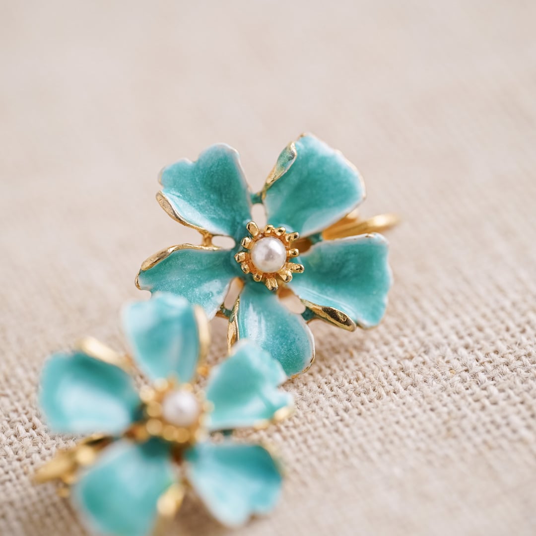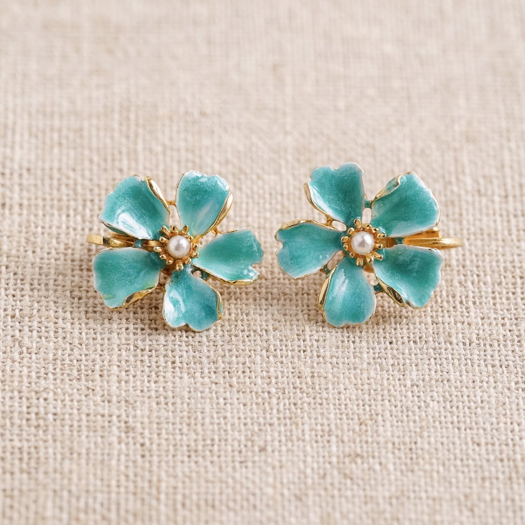 柔らかなミントブルーの花びらが耳もとに咲く、ヴィンテージイヤリング。