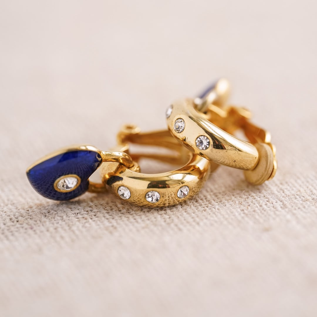 深いロイヤルブルーのエナメルに、そっと光を宿したクリスタルが瞬く――