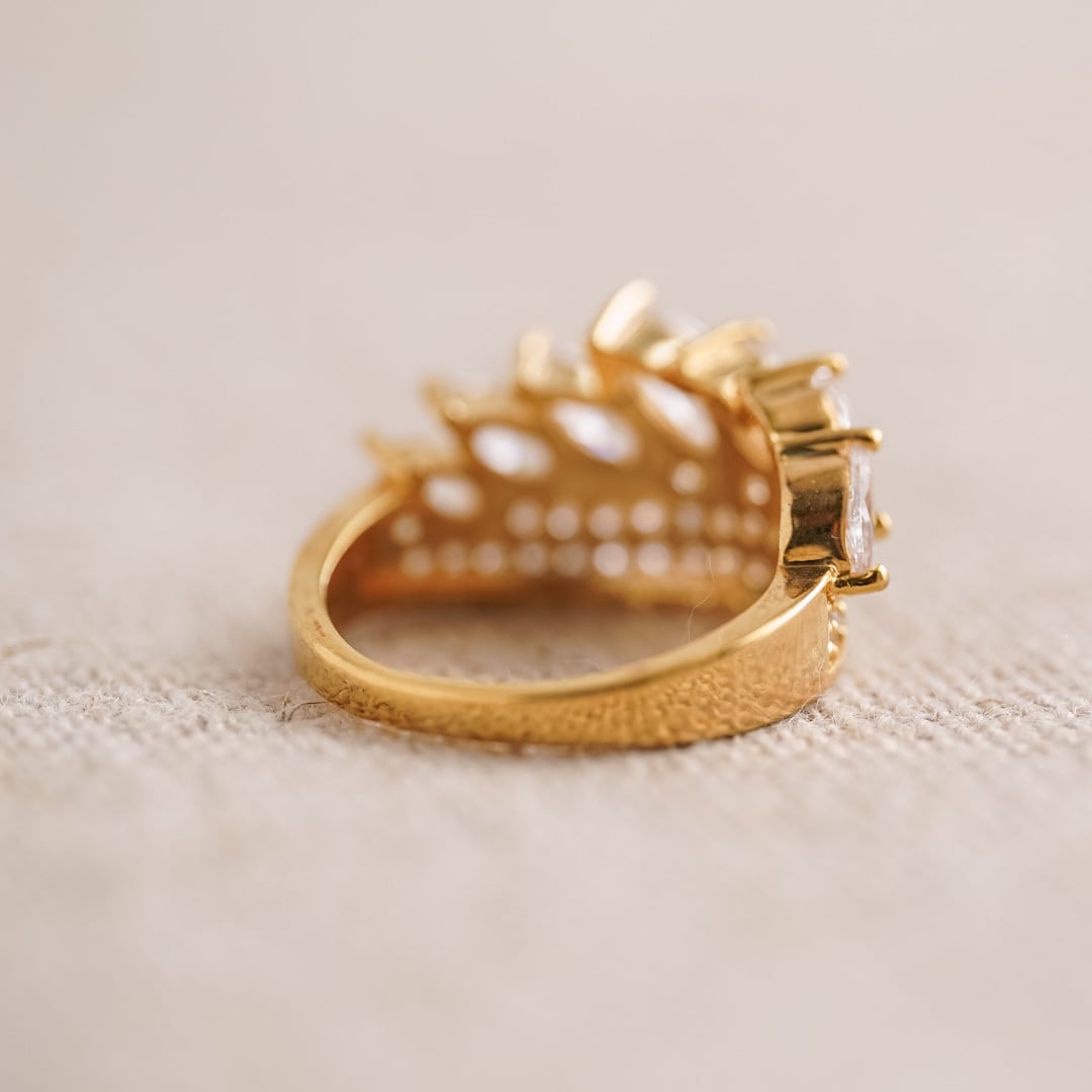まるで光の葉を重ねたような、繊細な造形が美しいヴィンテージリング。
