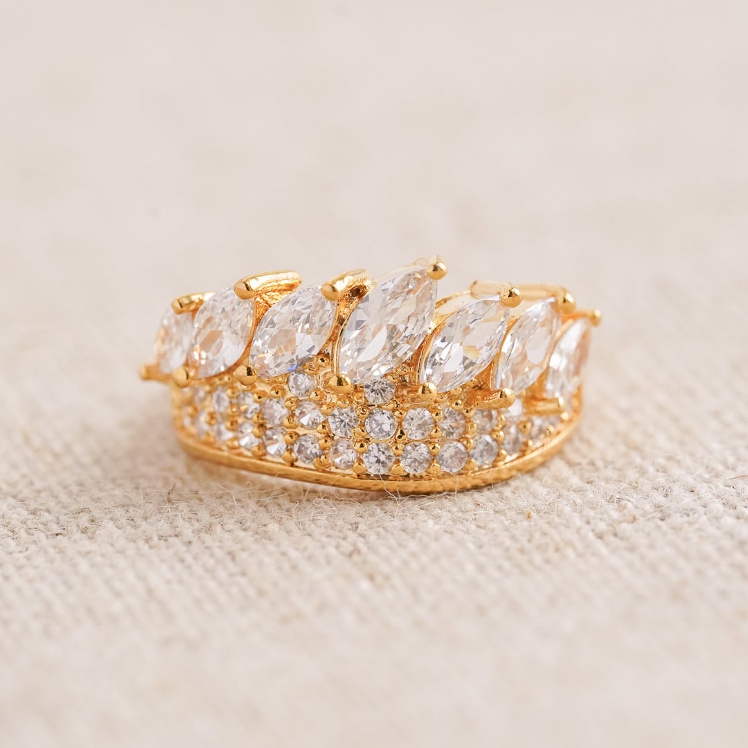 マーキスカットのクリアストーンが流れるように並び、下段には細やかなラインストーンが敷き詰められています。