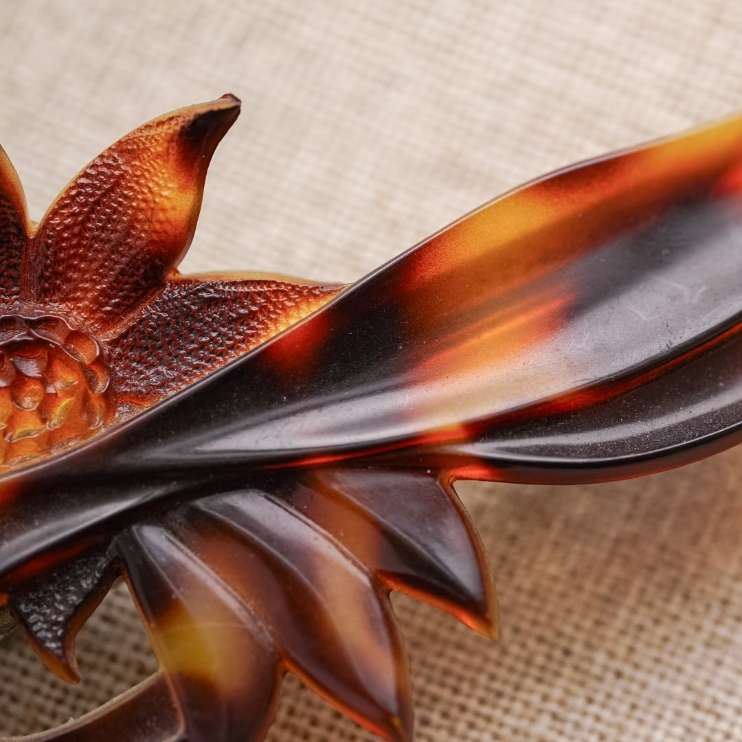 深いブラウンからハニーアンバーへと溶け込むように変化する“べっ甲調”の素材は、