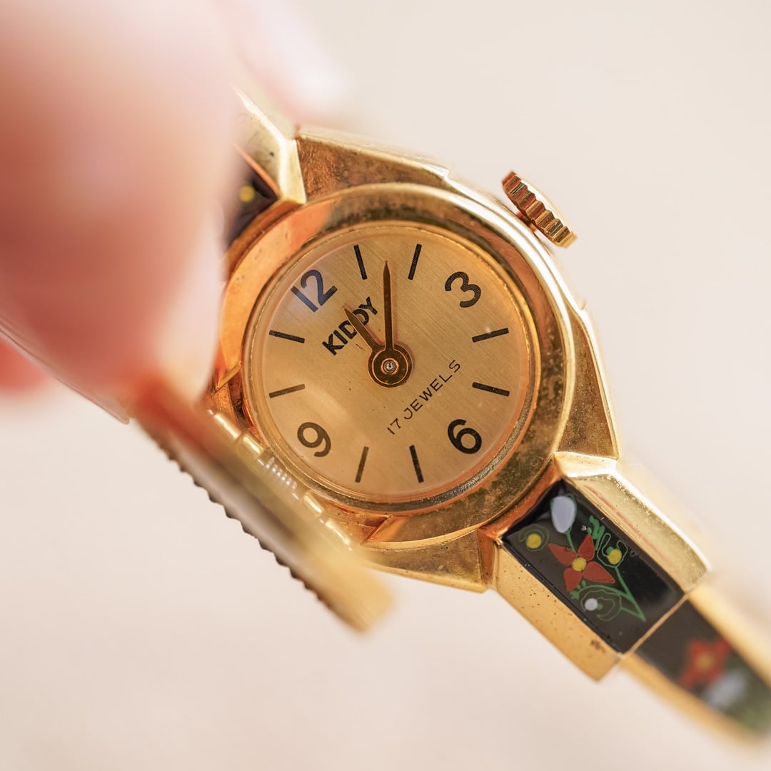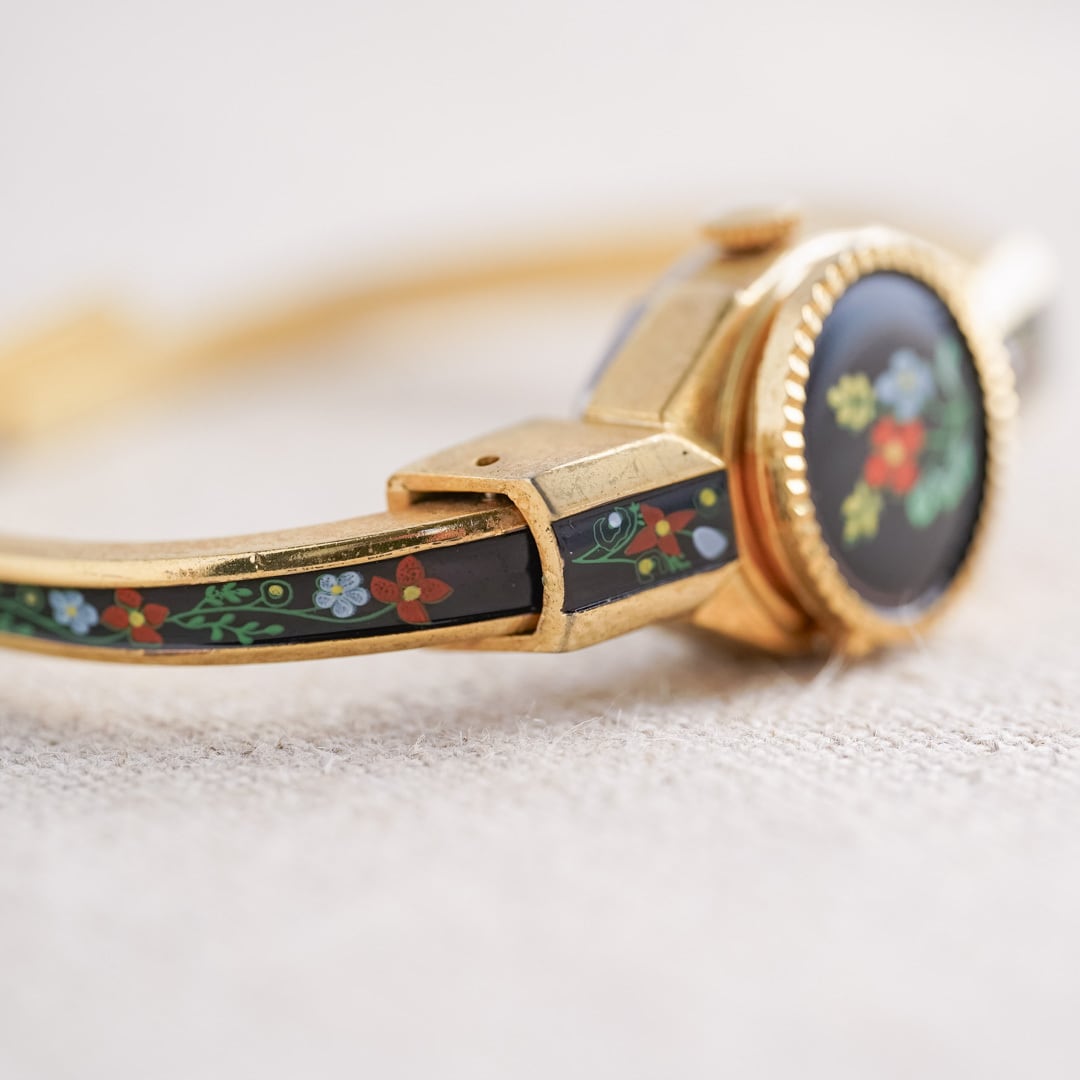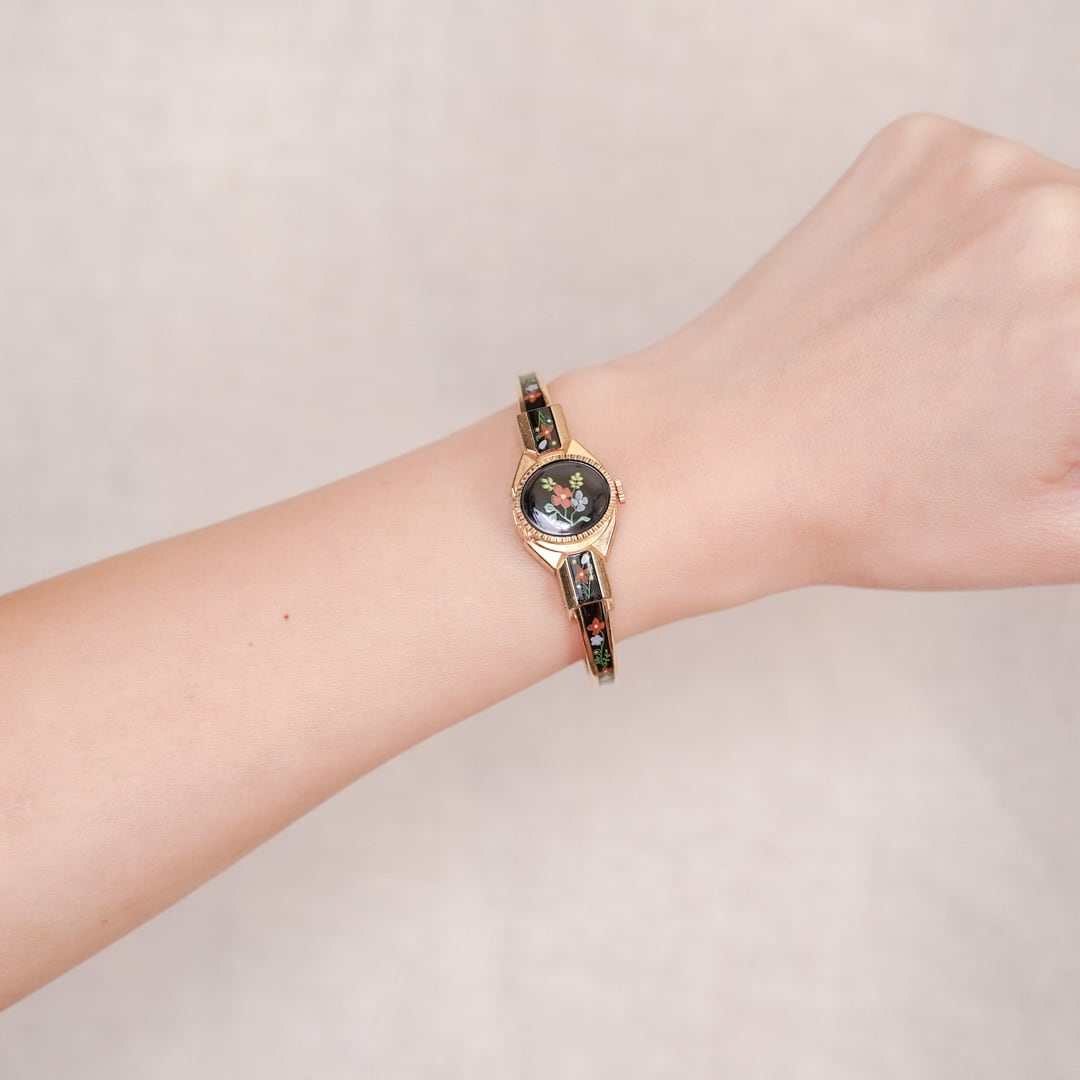 このヴィンテージの手巻き式ウォッチは、まるで小さな絵画のように精巧で、手もとに飾るアートピースのような存在です。