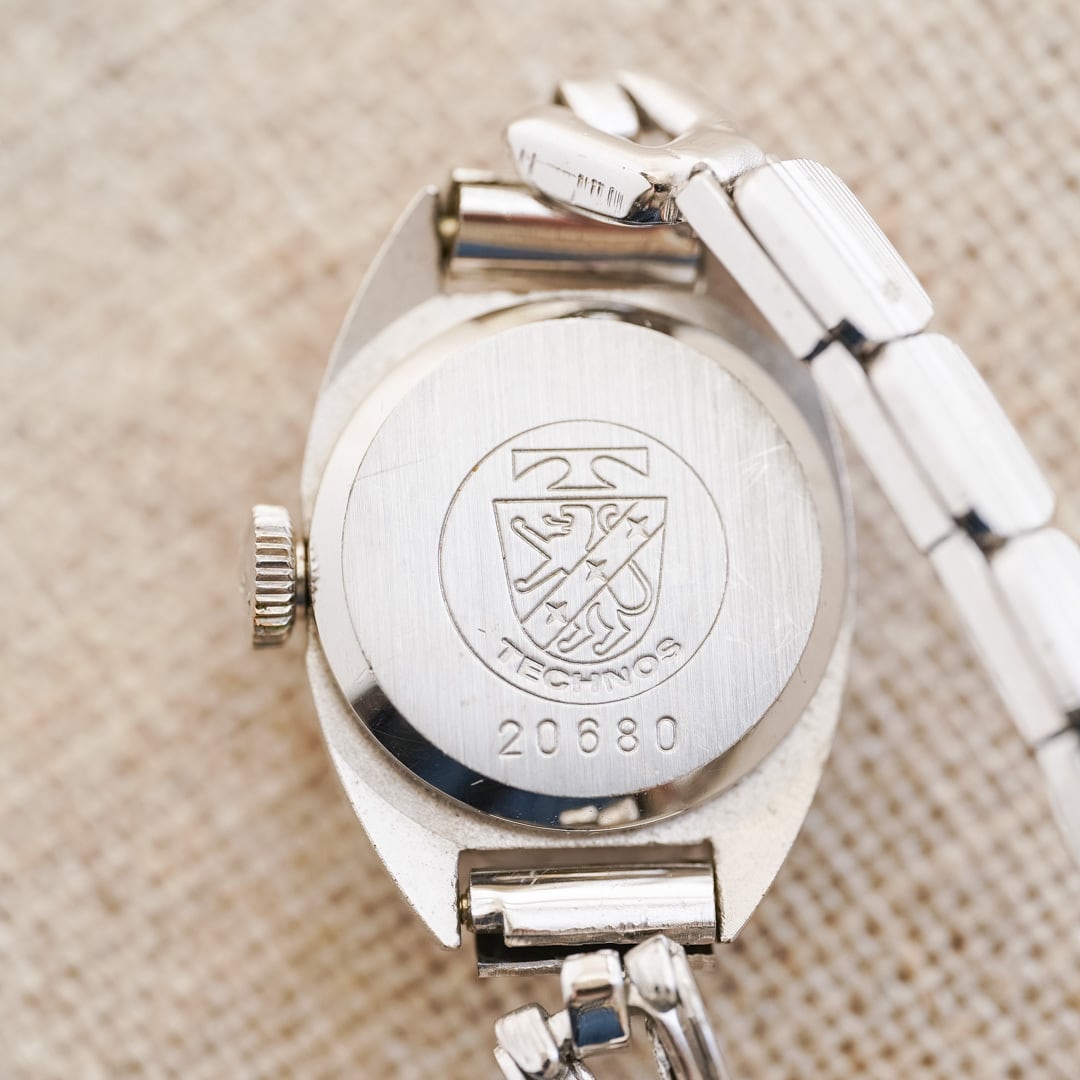 A quiet precision lives within this petite vintage timepiece. This hand-wound ladies’ watch is crafted by Technos, a Swiss-born heritage brand established in the early 1900s. Known for its reliable Swiss movements and refined, modern aesthetics, Technos has long been loved for its ability to balance accuracy and beauty—an appeal that remains strong even decades later.