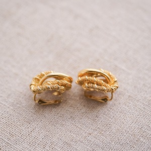 なめらかなゴールドトーンの曲線が幾重にも重なり合う、Trifari(トリファリ)らしい完成度の高いイヤリング。
