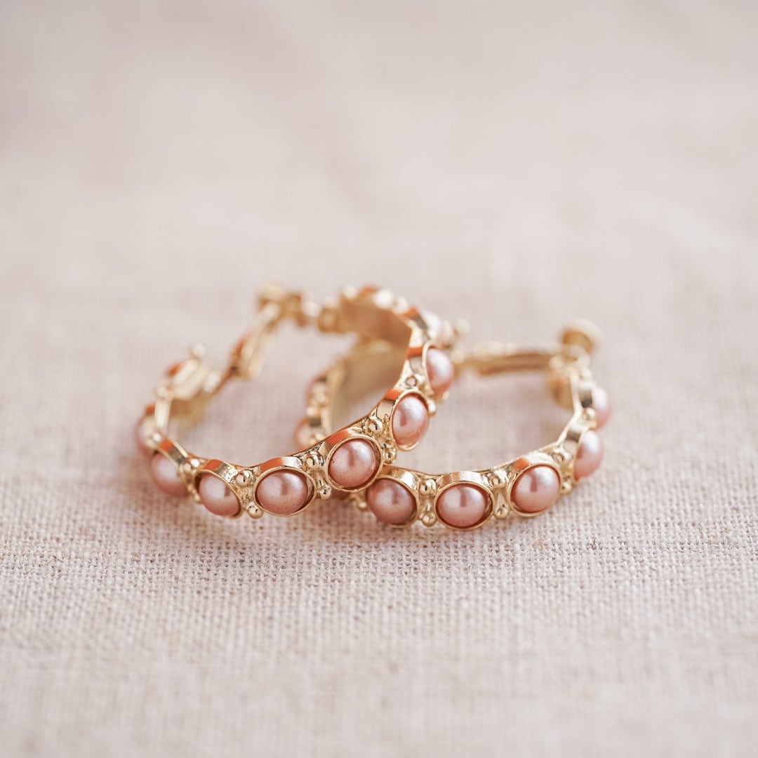 Softly luminous hoop earrings adorned with blush-toned pearls.