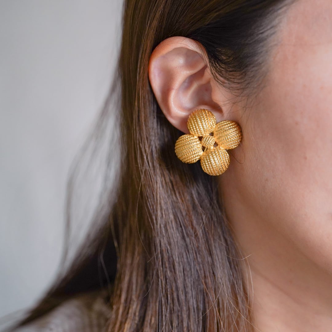 At first glance, the earrings feel decorative and luminous. Yet the closer you look, the more their quiet precision reveals itself. Each petal is carefully shaped, with subtle ridges that catch the light softly rather than sharply, creating depth instead of sparkle for sparkle’s sake. The result is a glow that feels warm, dimensional, and composed.