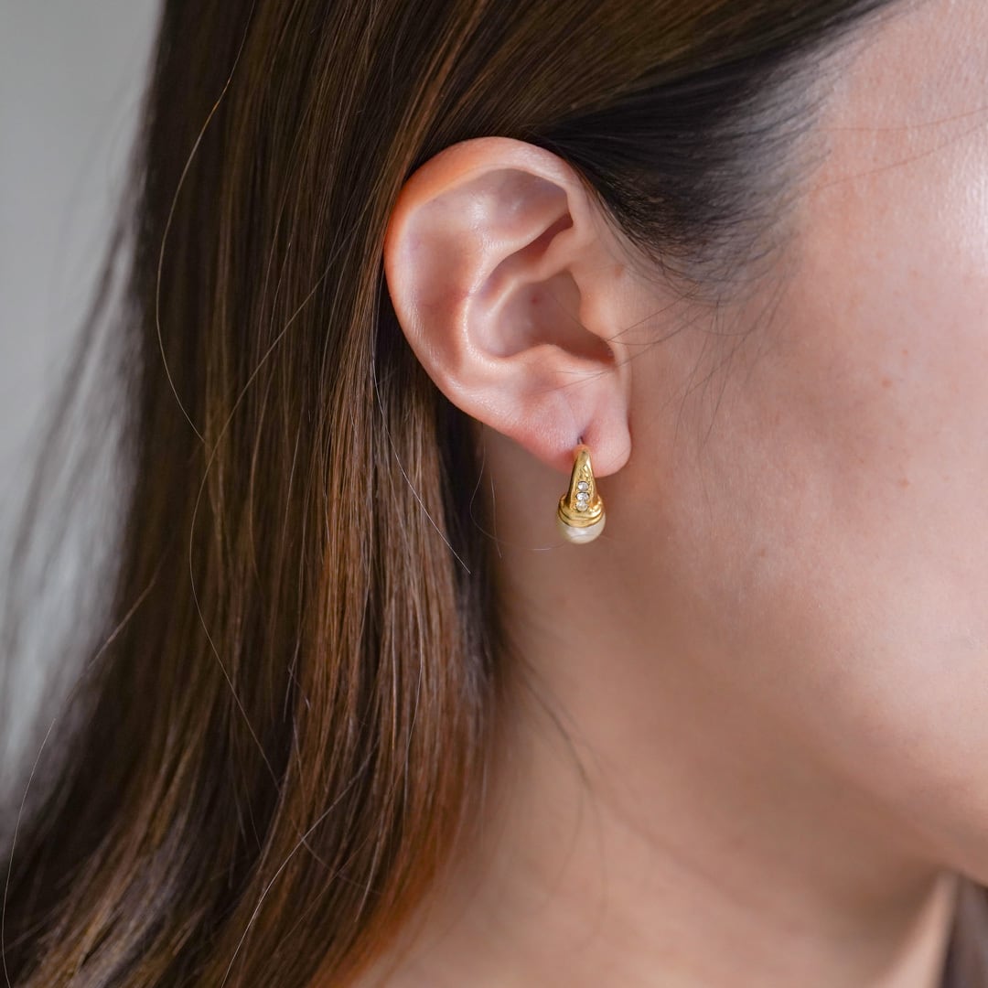 ヴィンテージ パール&ラインストーン ピアス