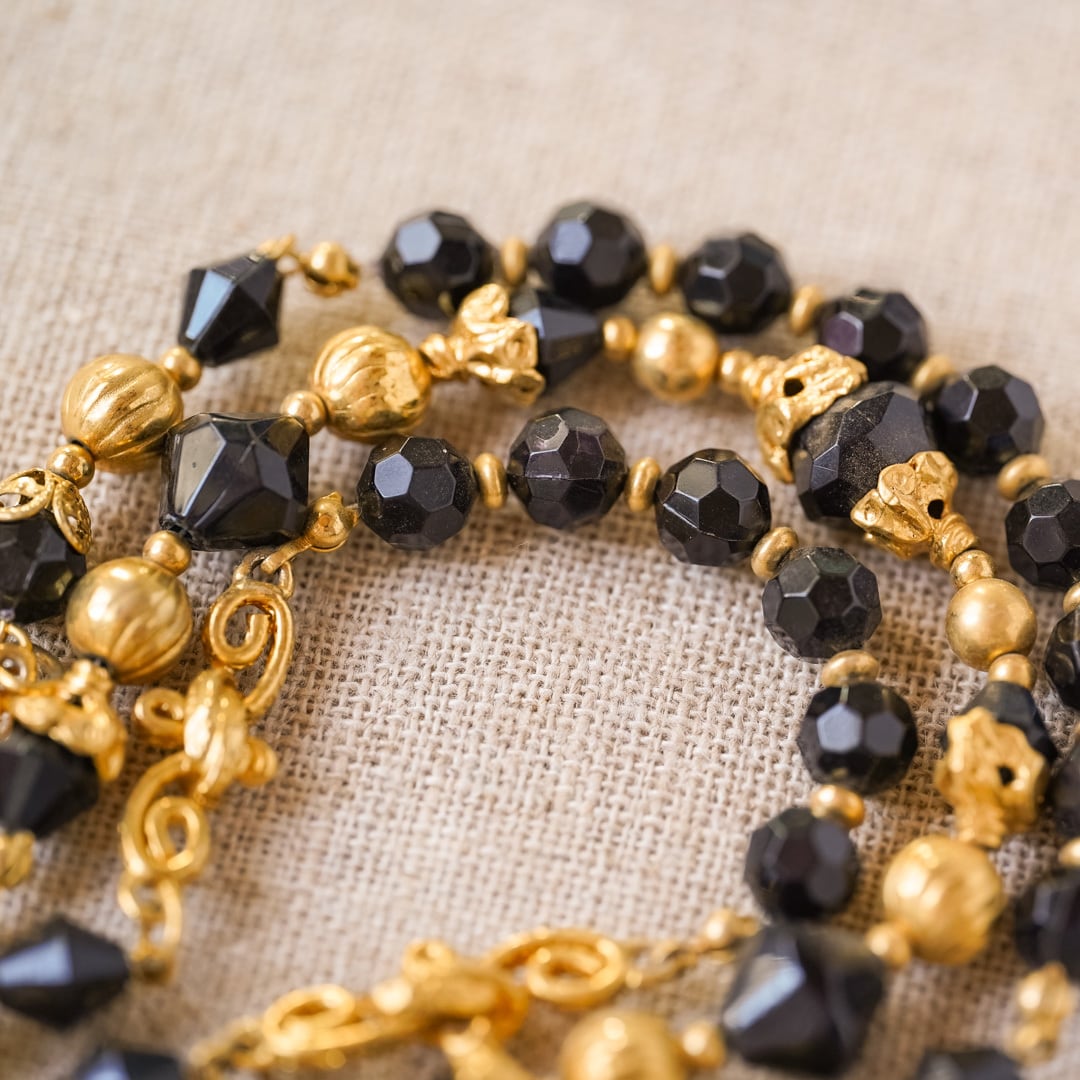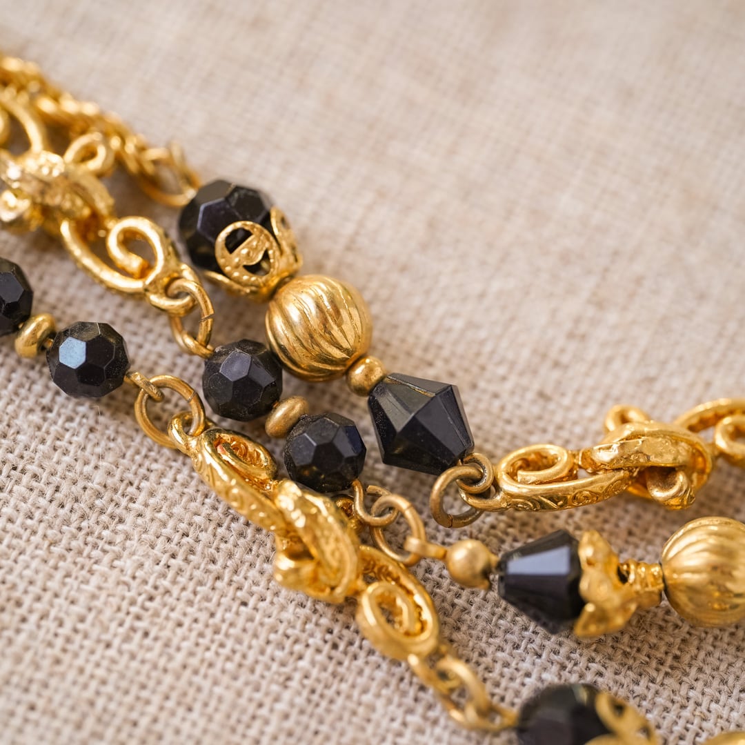 複数のゴールドチェーンに、ブラックのファセットビーズ。