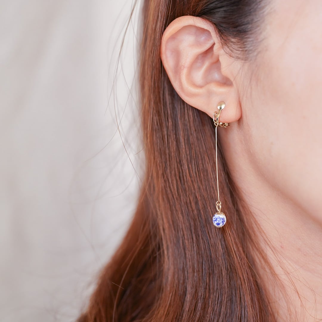 Each miniature ceramic sphere is individually hand-painted, and the gentle variations in brushstroke and tone give the piece a warmth and individuality that cannot be replicated by mass production. Though petite in size, these earrings reveal their depth upon closer inspection, offering a quiet sense of satisfaction—an awareness of wearing something truly considered and special.