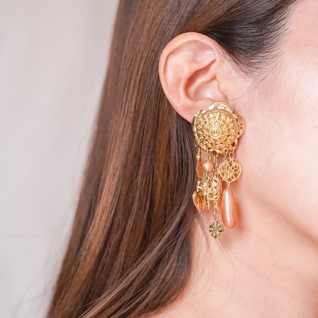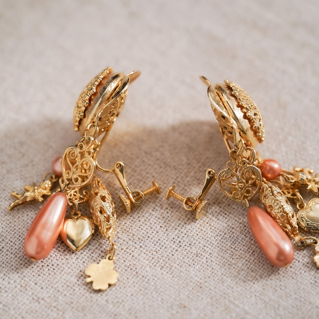 こうした透かし細工と可動パーツを組み合わせたイヤリングは、現在では状態良く残るものが限られています。