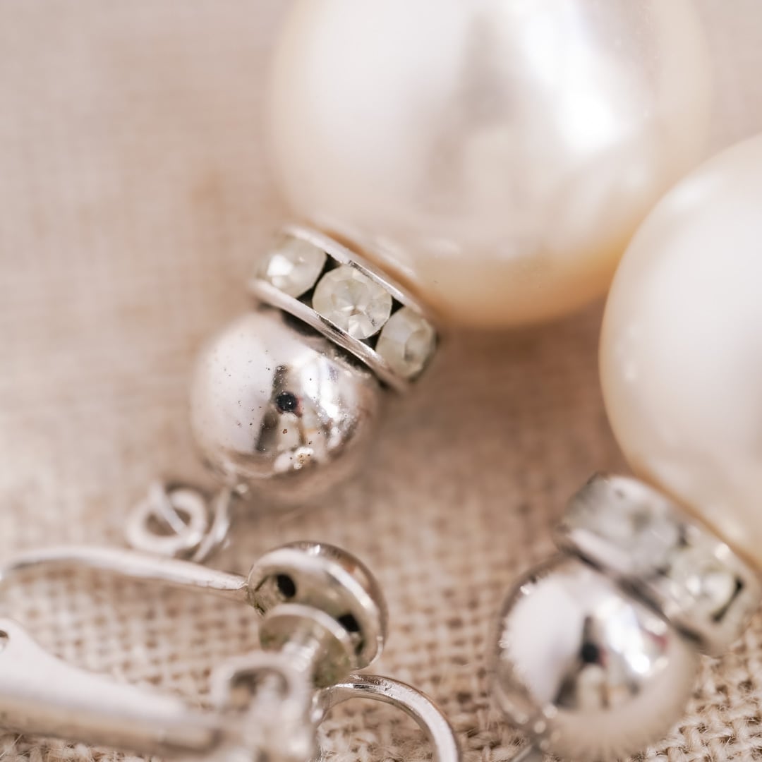 Material: Brass, silver metal plating, costume pearl, rhinestone