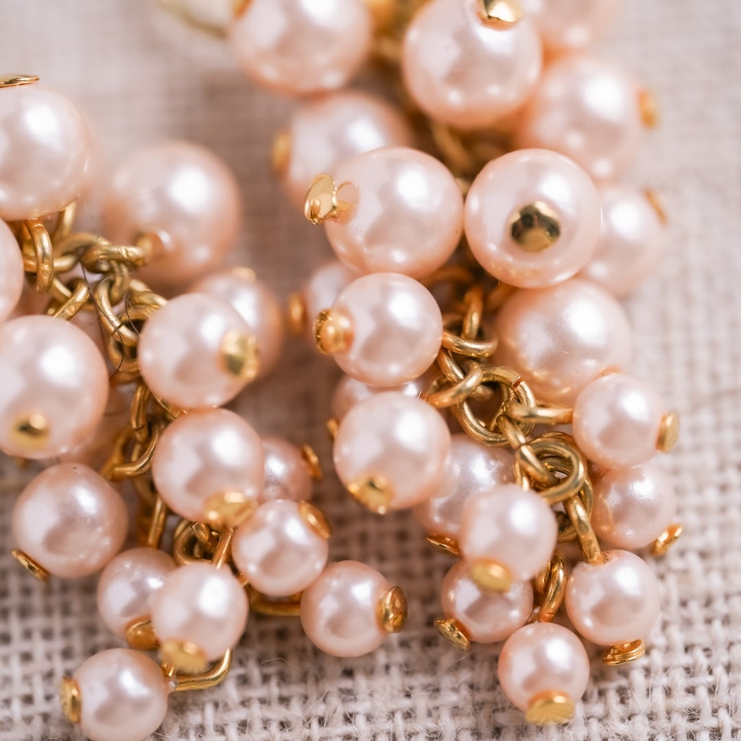 Vintage grape motif pink costume pearl earrings