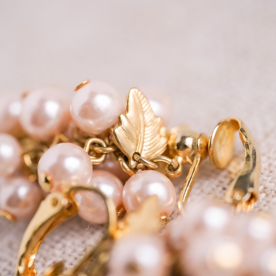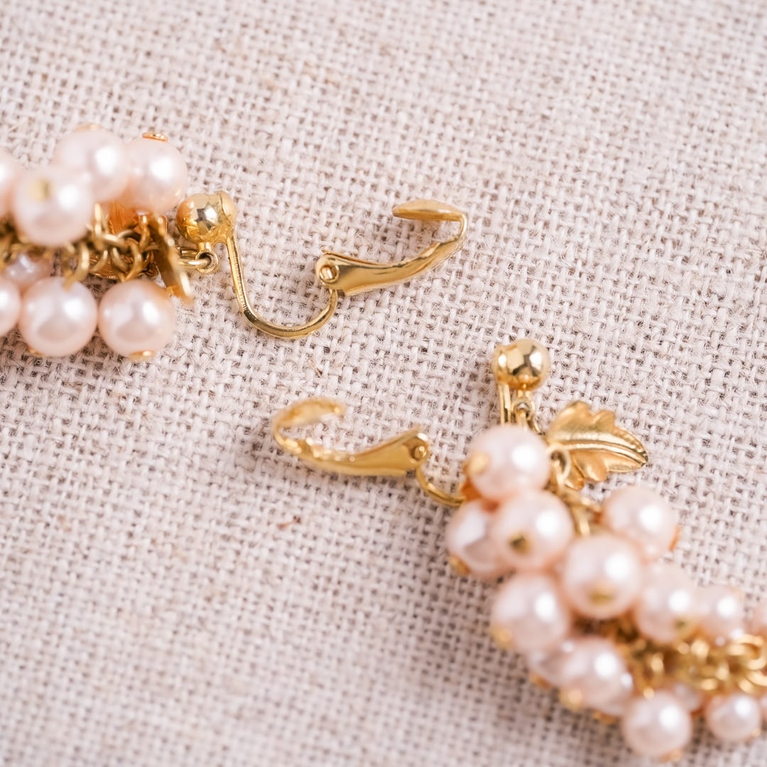 房状に連なるパールが、耳もとでやわらかく揺れるグレープモチーフのヴィンテージイヤリング。