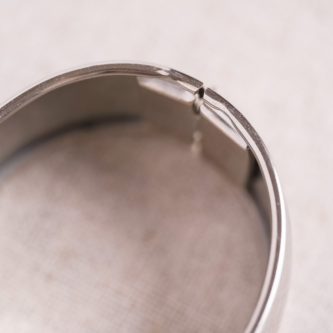 こちらは、幅のあるメタルを用いた、構造的なバングル。
