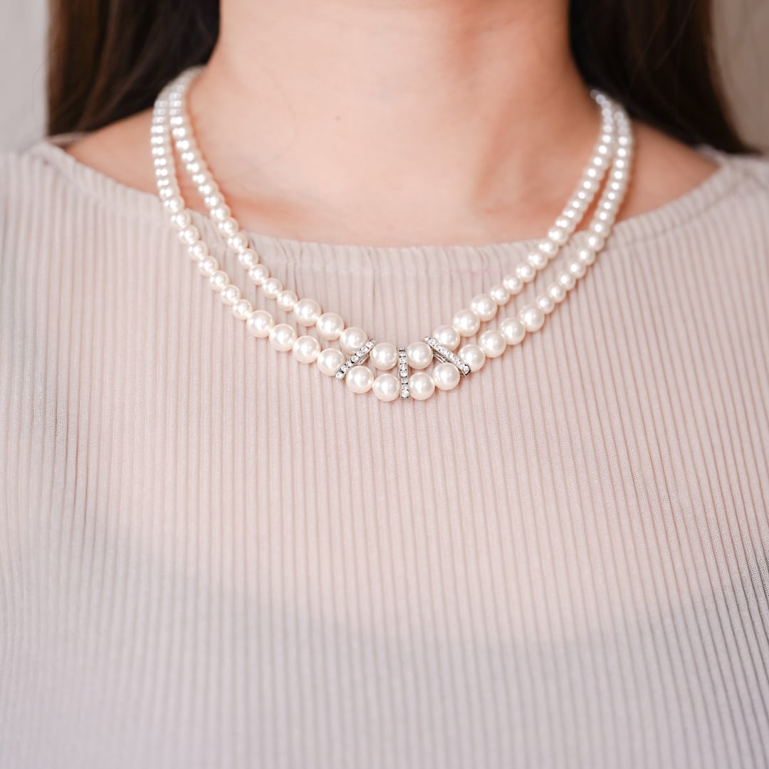 Valentine's Day Marche: Costume pearl double strand necklace
