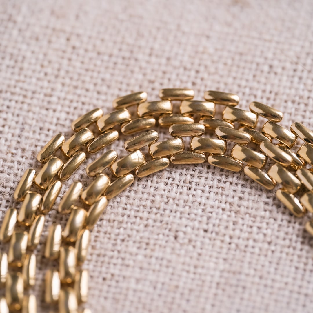 二連チェーンの程よい重みが首もとに安定感をつくり、