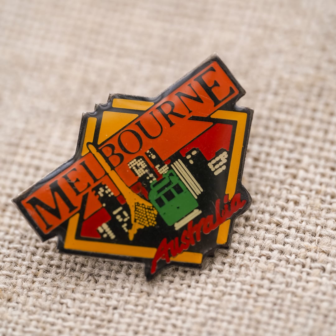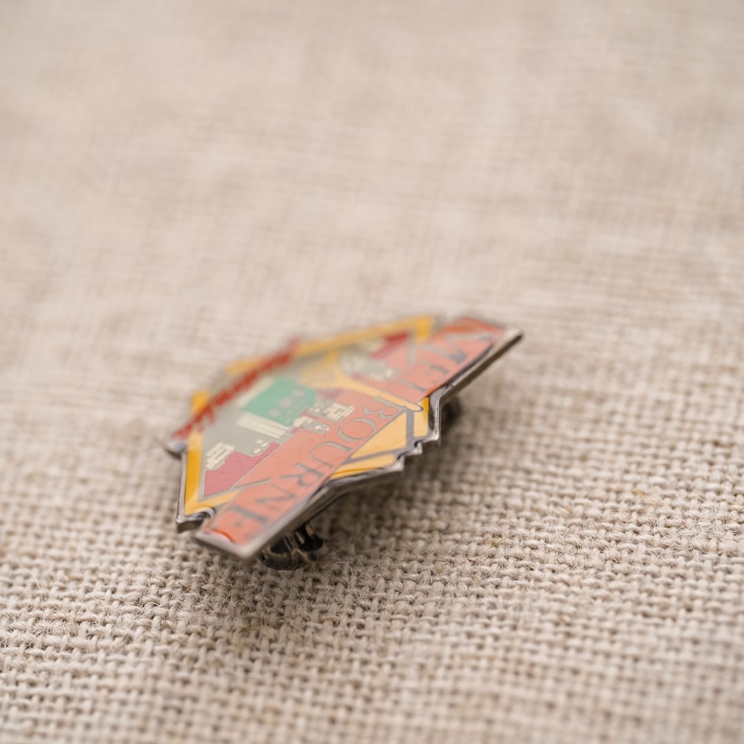 MELBOURNEの文字と都市のシルエットが印象的な、ヴィンテージブローチ。