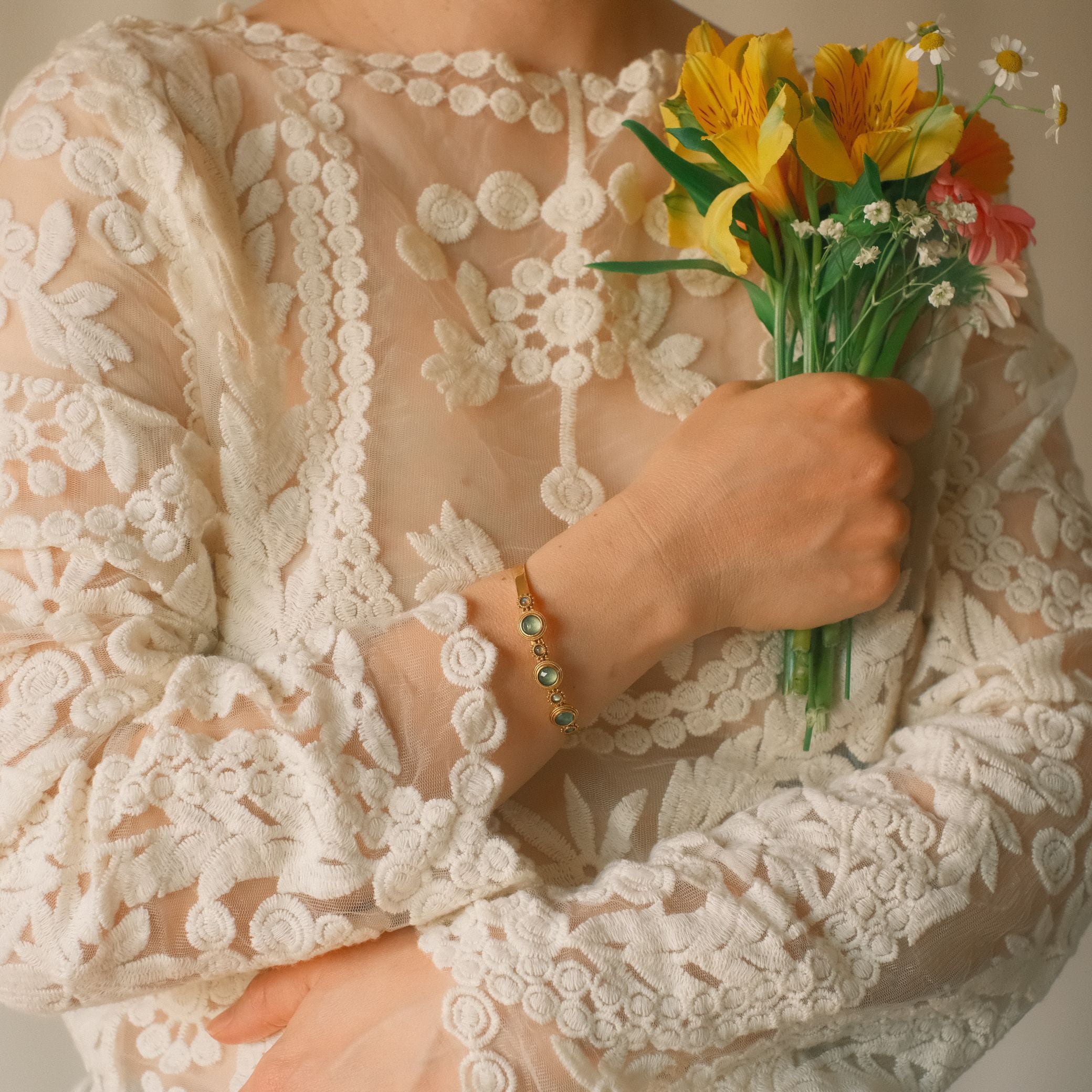 Marie-Hélène collaborates with French craftsmen (stampers, gilders, plumassiers) and makes her jewelry herself in her workshop. Her universe is delicate and teeming with stories, mixing materials in a bohemian, chic and retro spirit. Each of Marie-Hélène's handmade jewelry is unique and enchanting.