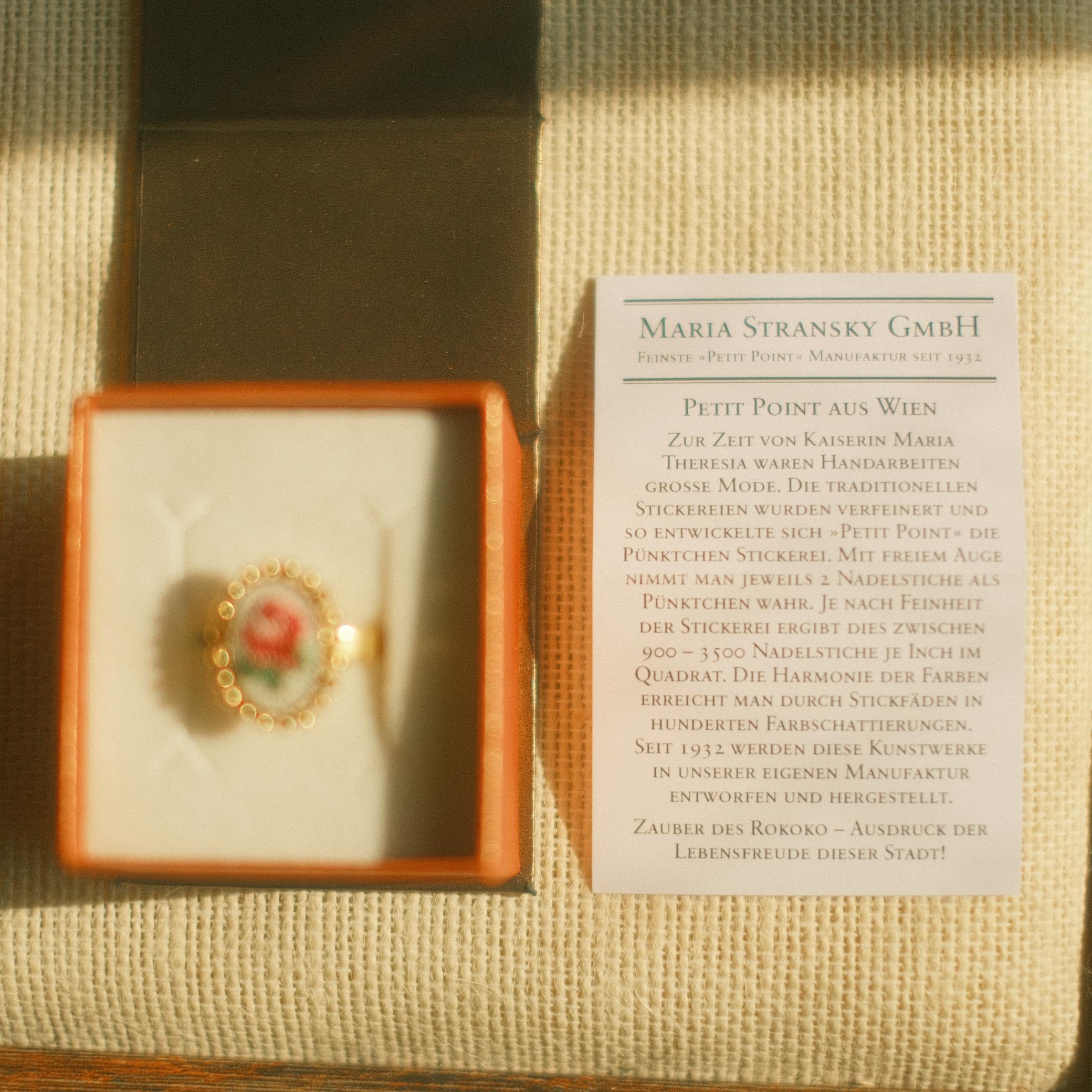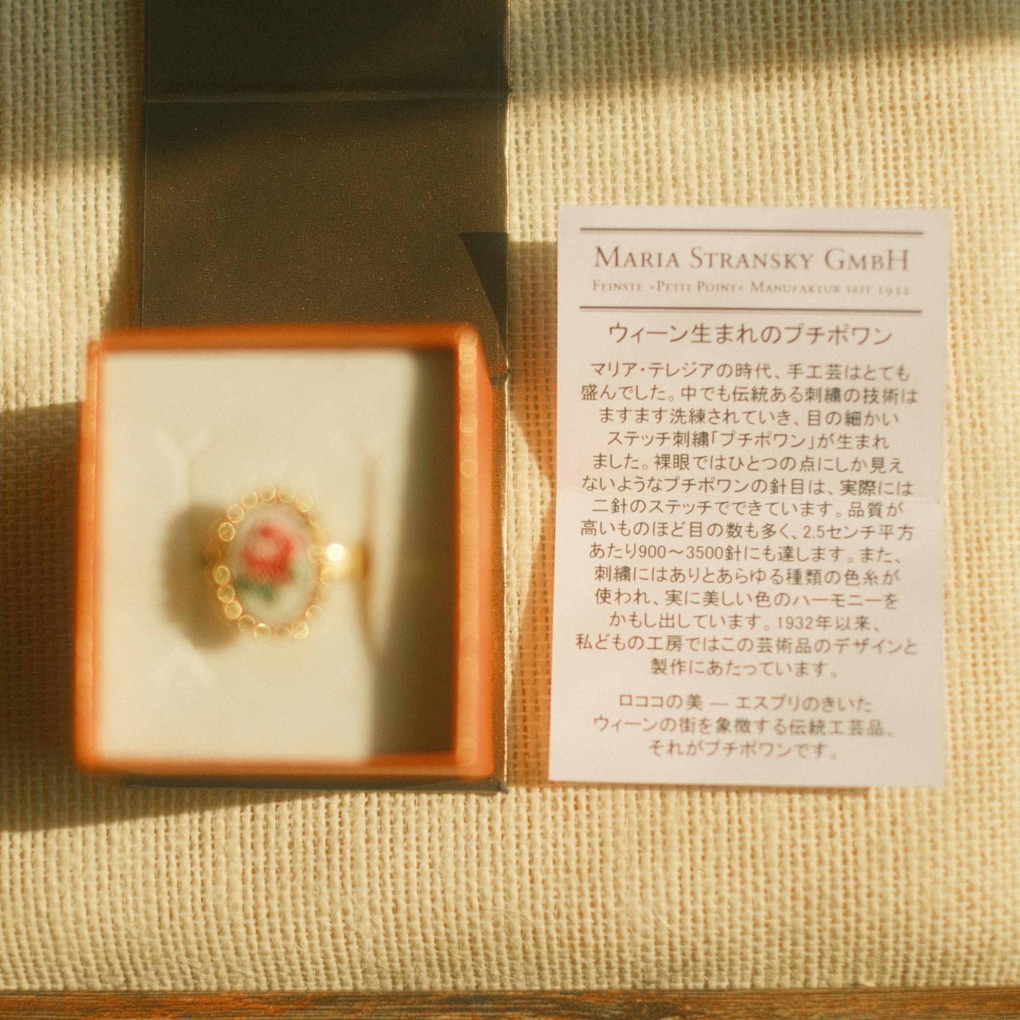 この度ご紹介するMaria Stranskyはウィーンの老舗プチポワンジュエリーブランドです。1932年依頼、ウィーンの工房でプチポワンの芸術の発展、デザイン、制作に携わってきました。