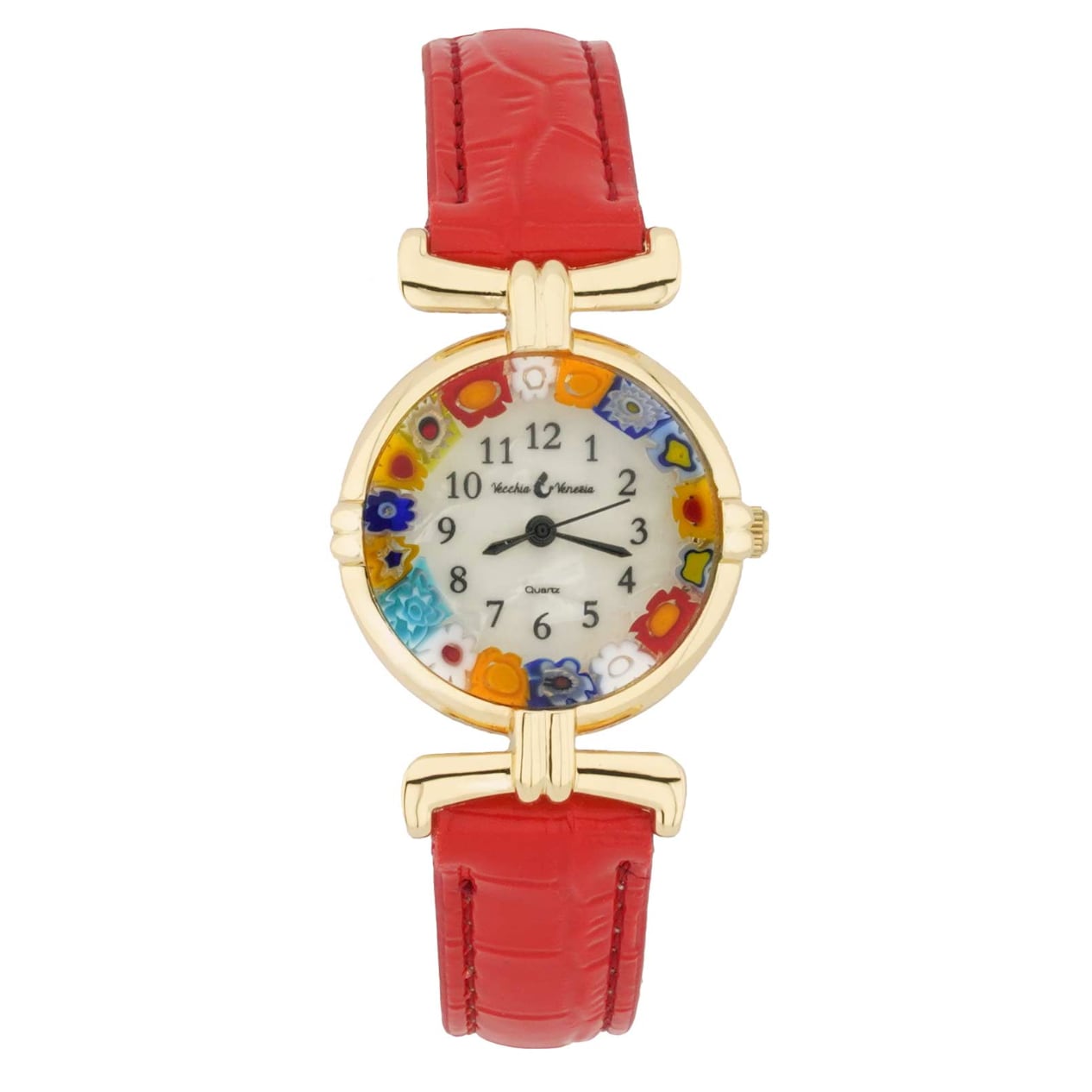 Murano Millefiori Watch With Leather Band - Red-***クーポン適用外***