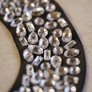 This classic vintage rhinestone collar necklace is a statement piece that brings an elegant new touch to any top. Featuring a design where pearls of varying sizes are arranged over a black satin base, it creates a soft gradient effect that exudes sophistication. Perfect for layering over casual blouses or dresses, this collar adds an instant classic charm.