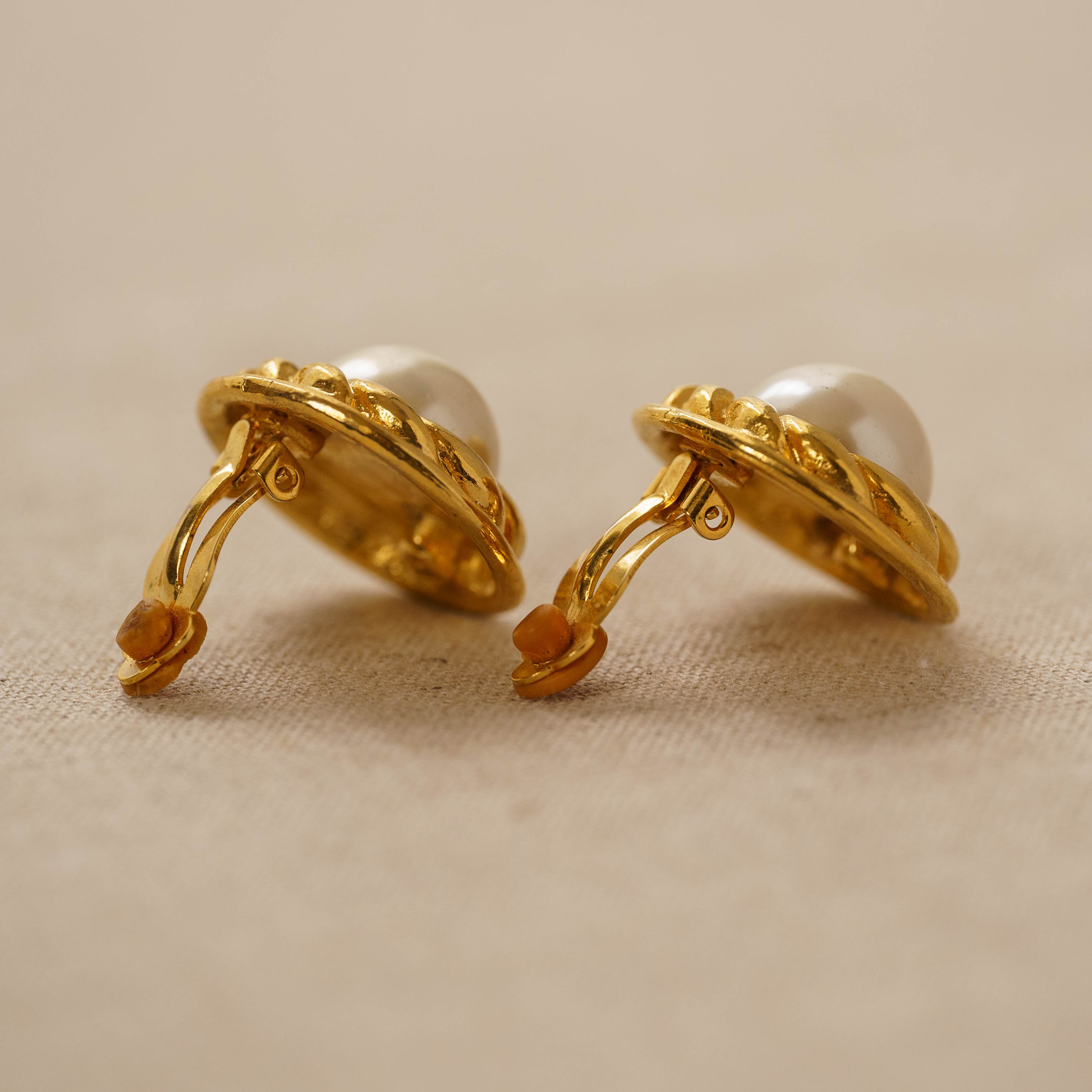 Encased in a classic rope-motif frame, these costume pearl earrings offer a graceful touch to your ears. The subtle white tone of the pearls harmonizes beautifully with the warmth of vintage gold, exuding both presence and elegance. Their refined design makes them versatile, enhancing looks from office wear to evening ensembles, elevating any outfit with a touch of sophistication.