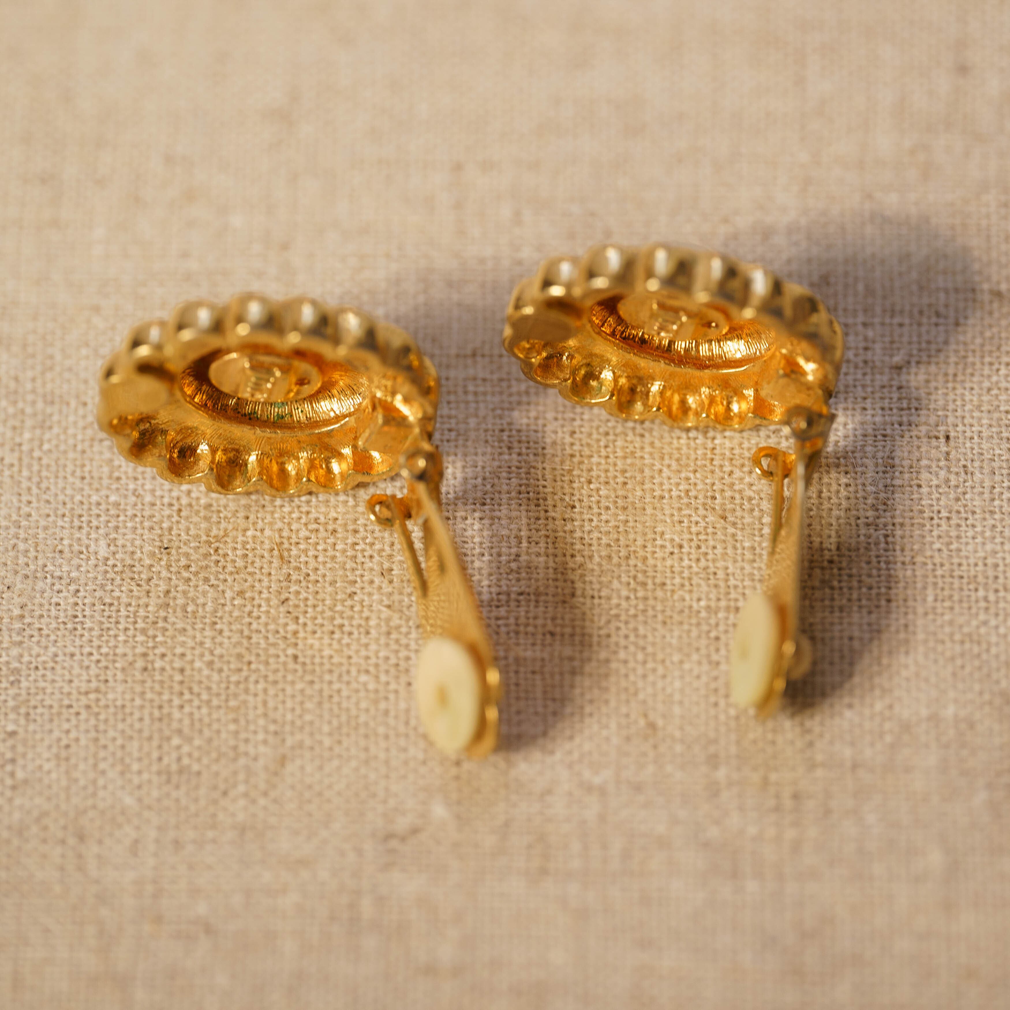 ロープ状にアレンジされたゴールドメタルが、抽象的でエッジのきいたデザインを際立たせます。パールの静ひつなホワイトトーンは、ゴールドメタルのあたたかみと絶妙に調和し、ヴィンテージジュエリーならではの重厚感を演出。エレガントかつ存在感のあるイヤリングは、シンプルな装いに華を添える一品。顔まわりに程よいアクセントを加え、モードなコーディネートにぴったりです。