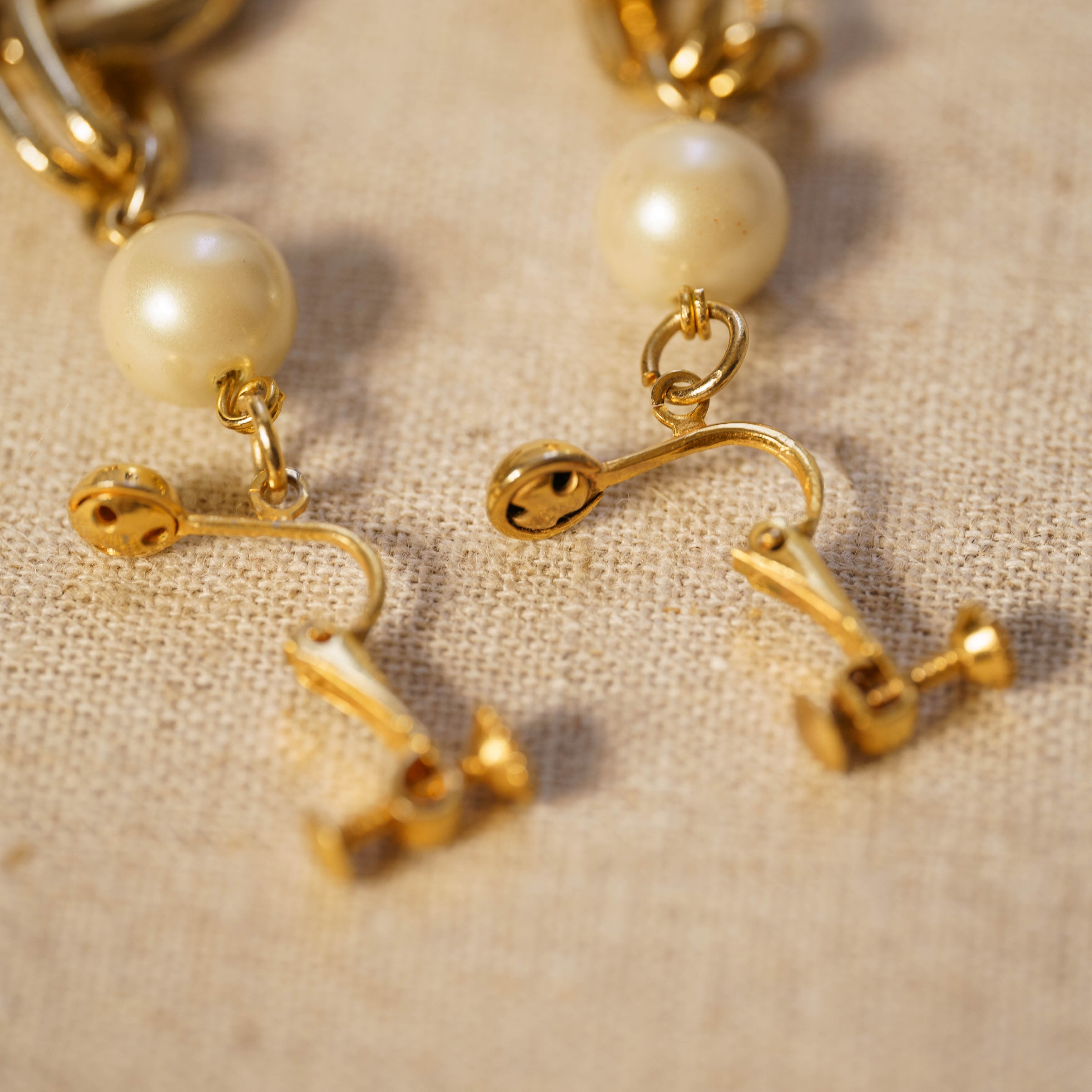These vintage earrings combine the serene white tones of pearls with the warm allure of gold metal, exuding a timeless vintage charm. When worn, they sway gently, catching the light with a subtle sparkle. The substantial weight unique to vintage jewelry evokes a sense of classic elegance each time they are worn, enhancing your overall style. Pair these earrings with a simple dress or blouse for an effortlessly sophisticated touch to your look.
