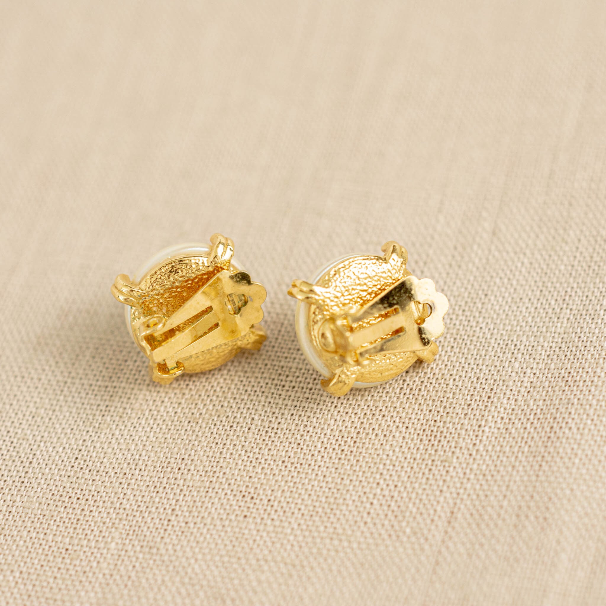 クラシカルな雰囲気が漂うデザインで、エレガントな存在感を放つヴィンテージパールイヤリング。ゴールドの台座が、コスチュームパールを美しく支え、深みのあるカラーリングが洗練されたヴィンテージ感を演出しています。パールの丸みが程よく耳もとを飾り、やや大ぶりながらもさりげない上品さを保つ点が魅力です。