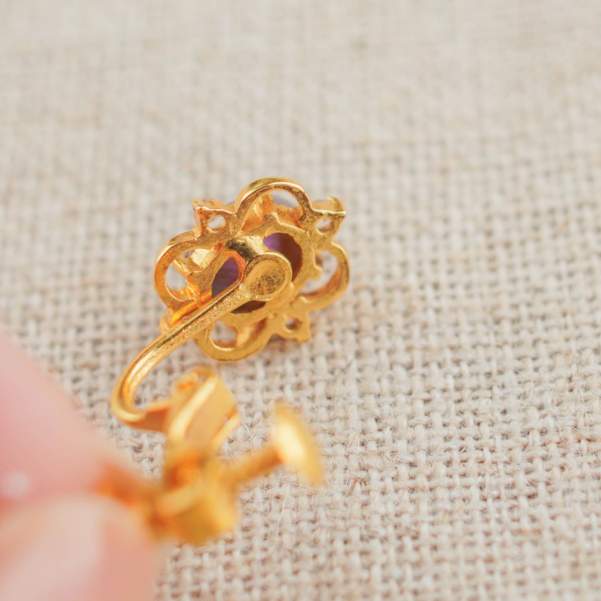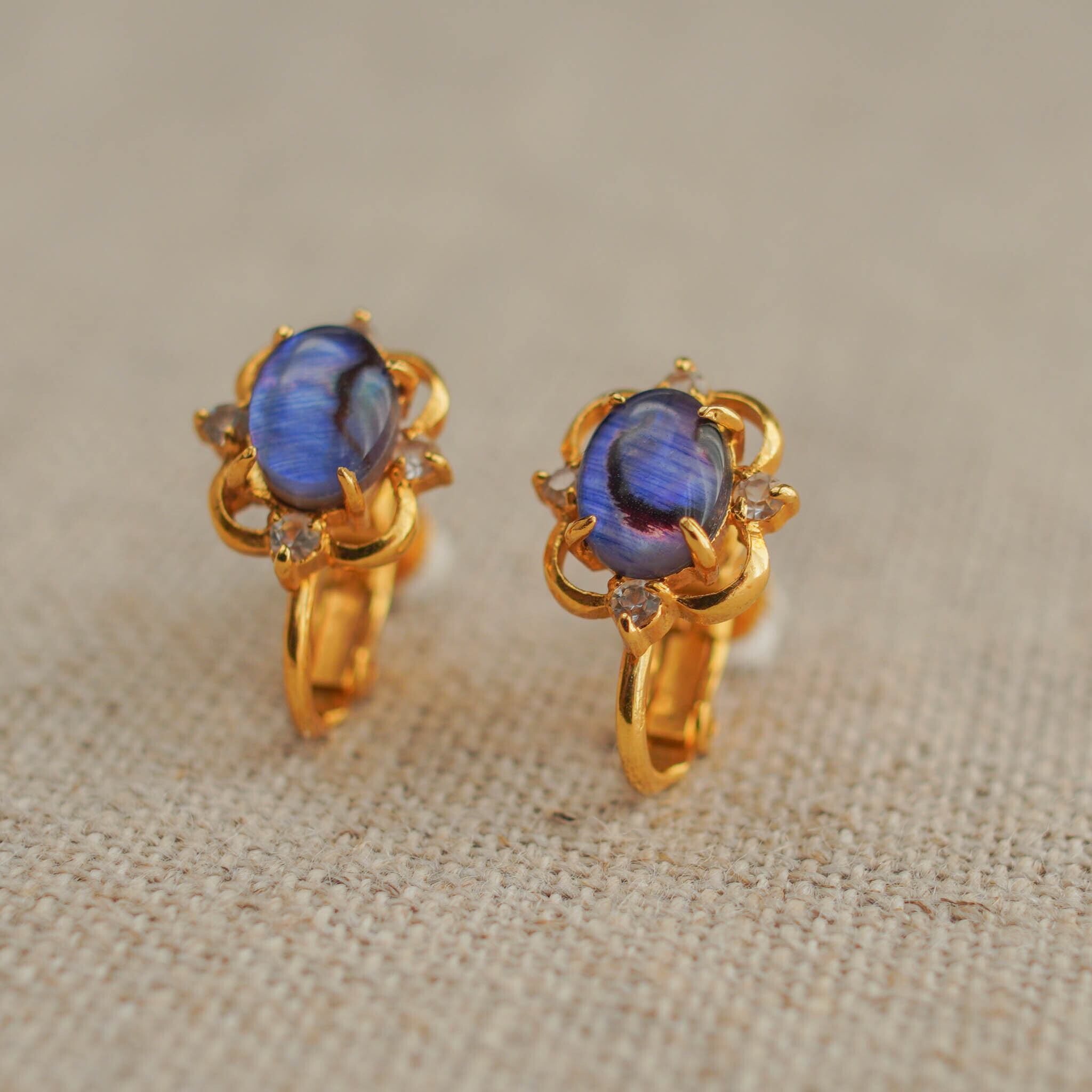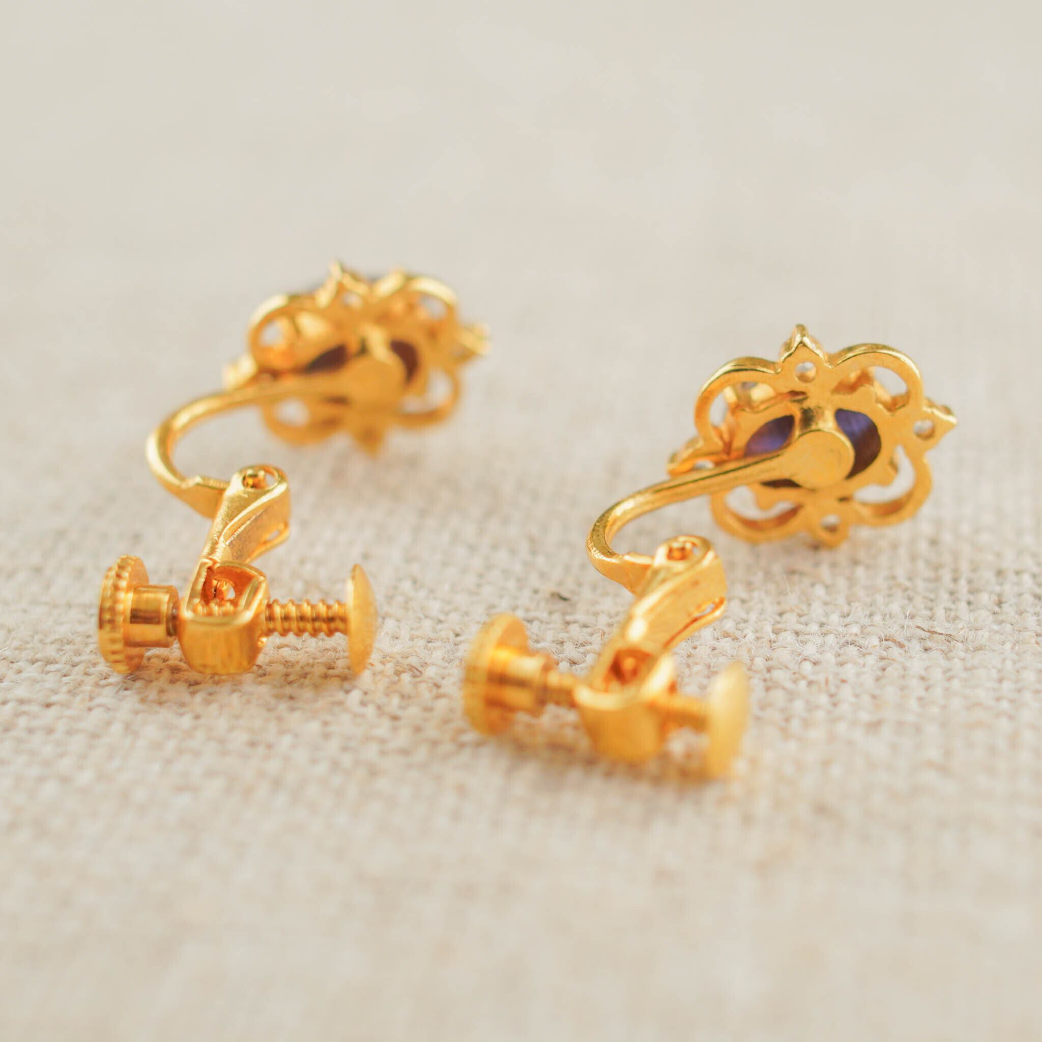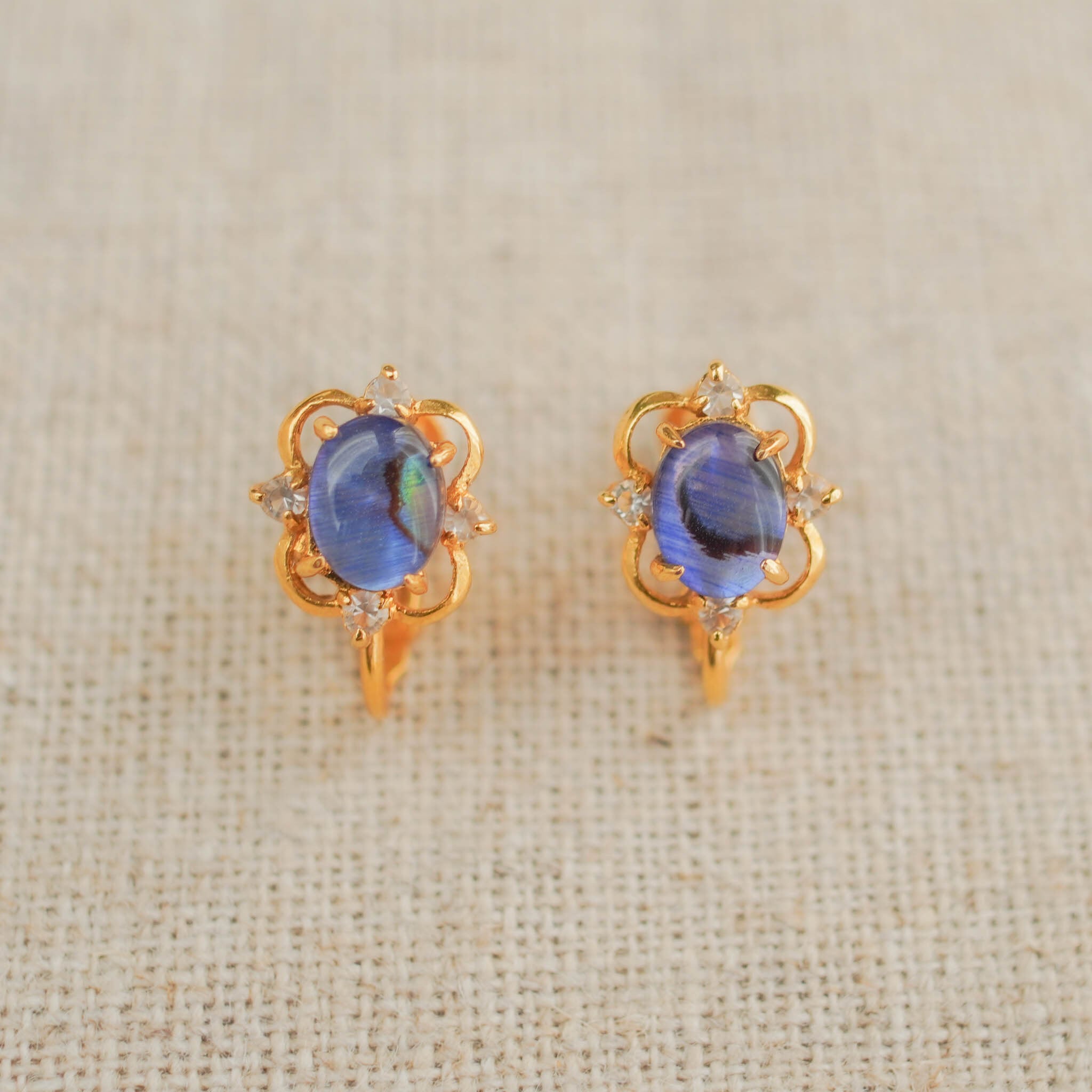 オーロラ加工が施されたカラーガラスが、まるで夢のようにやさしく輝くヴィンテージイヤリング。極小のラインストーンディテールが、光の角度でさりげなく煌めきを添え、深みのあるゴールドがクラシックな美しさを引き立てています。洗練されたシルエットが、耳もとで静かに揺れ動き、上品さと優雅さをそっと演出します。秋冬のコーデに華やかさを加えるアイテムとしてはもちろん、オールシーズンでどんなスタイルにも溶け込み、ワードローブに控えめなエレガンスと輝きを添える一品です。