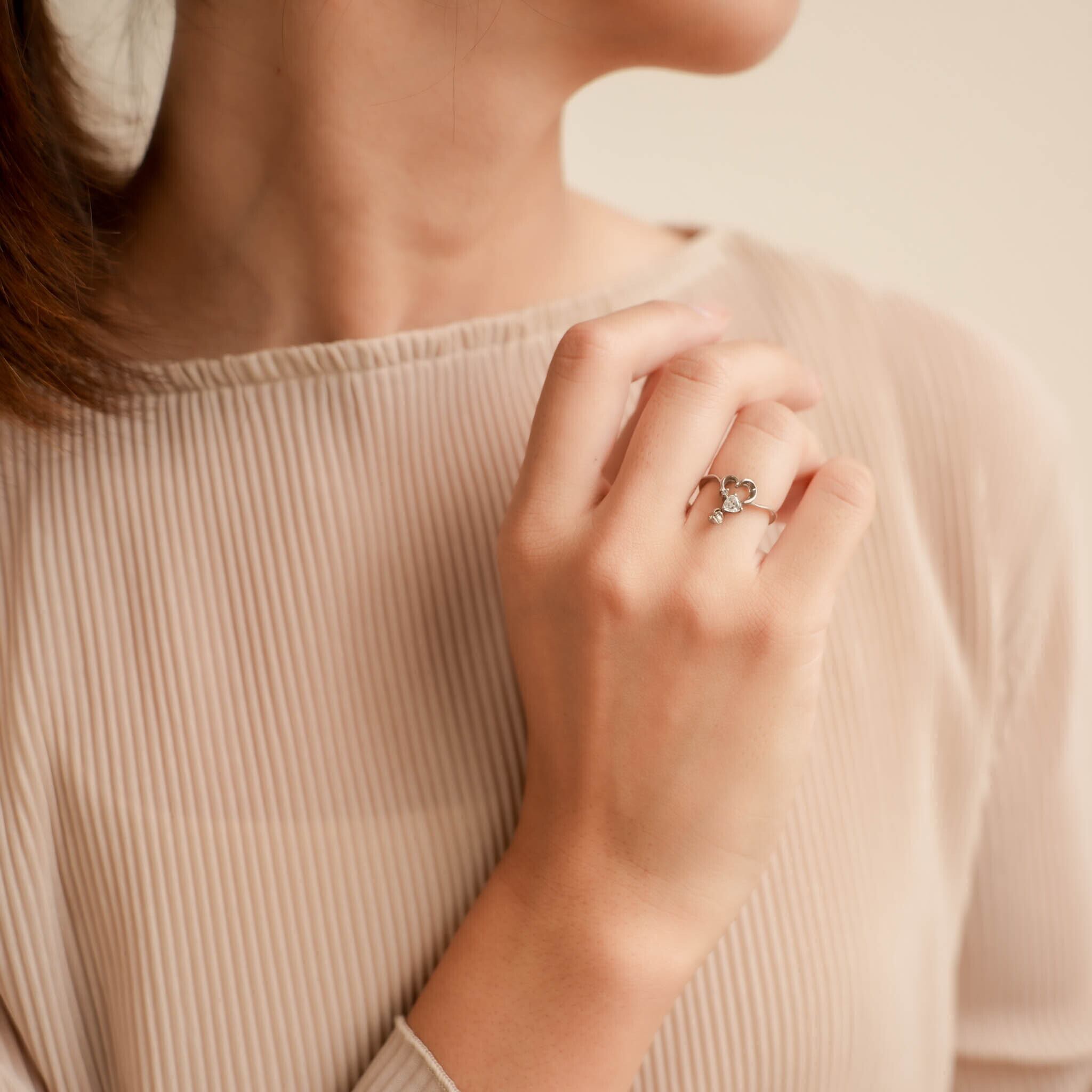 丁寧に象られたハートモチーフが特徴のこのヴィンテージリングは、愛らしさがあふれるデザインが魅力。シルバー925の良質な素材が、リング全体に上品さをプラスし、ガラスとラインストーンの透明感ある輝きが手もとを華やかに演出します。チャームとして揺れるハートモチーフが優雅に動き、細部まで職人技が感じられる逸品。ヴィンテージ感が漂うこのリングは、カジュアルにもフォーマルにもマッチし、特別な日や日常使いにおすすめです。