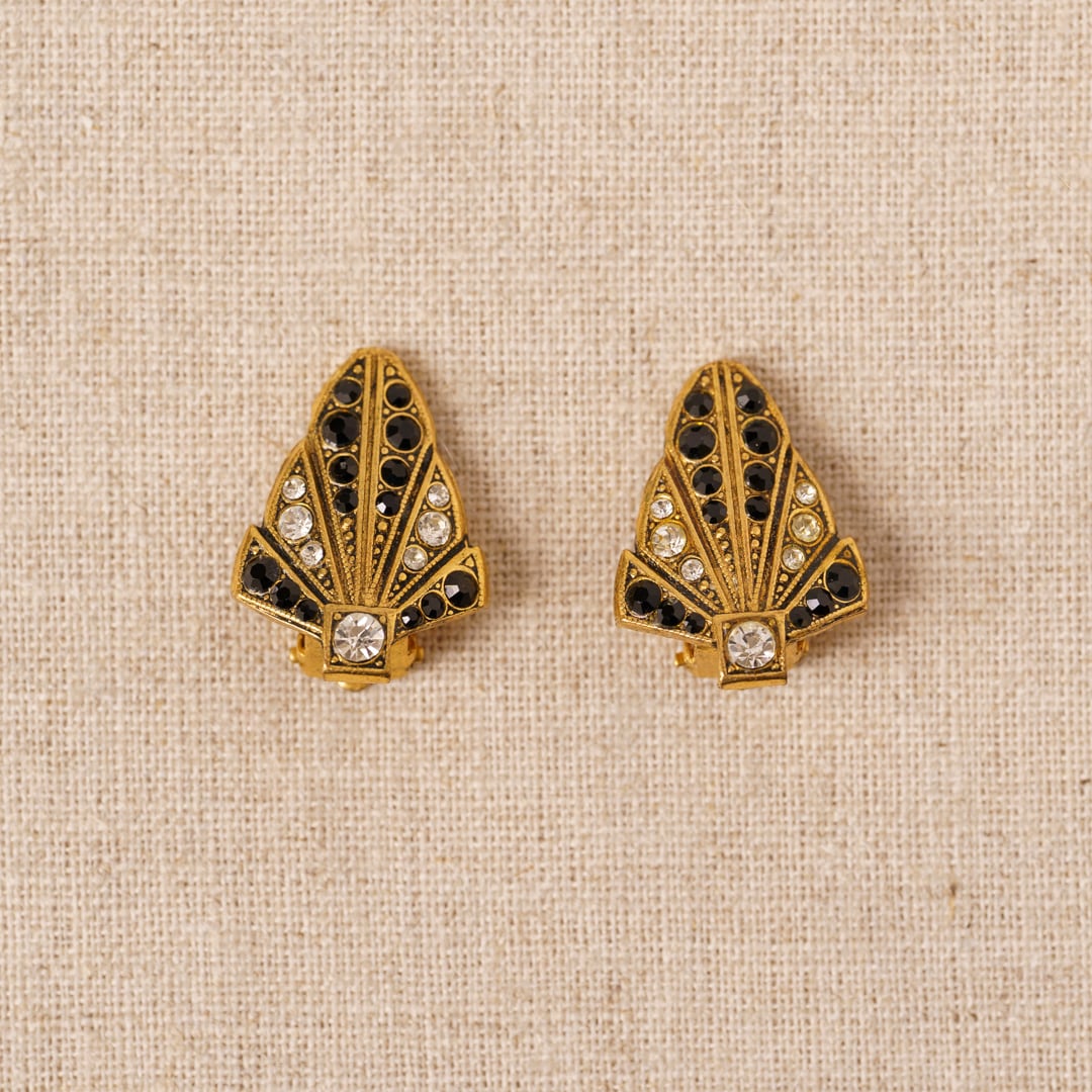 These vintage earrings feature an abstract nature motif, characteristic of Art Nouveau design. The two-tone rhinestone shimmer adds an elegant touch to the face, offering both glamour and refinement. The mid-century German influence brings a perfect blend of modern style and elegance, creating a design that is striking yet understated.