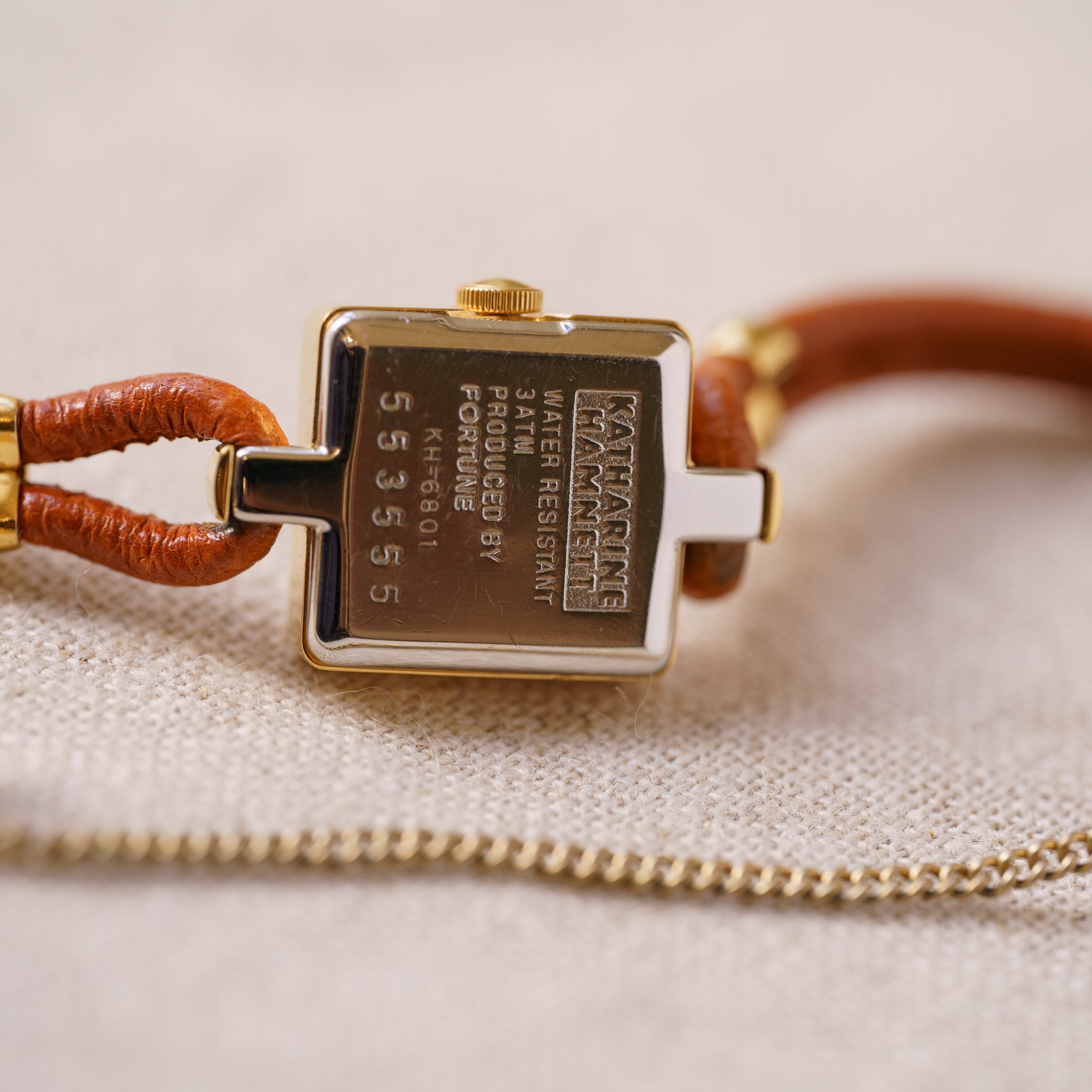 Katharine Hamnett, a British fashion brand, is renowned for its focus on environmental issues and social responsibility through design. Founded in the 1980s, it quickly gained popularity with its blend of modern style and meaningful messages. This vintage watch reflects the refined design aesthetic typical of Katharine Hamnett.
